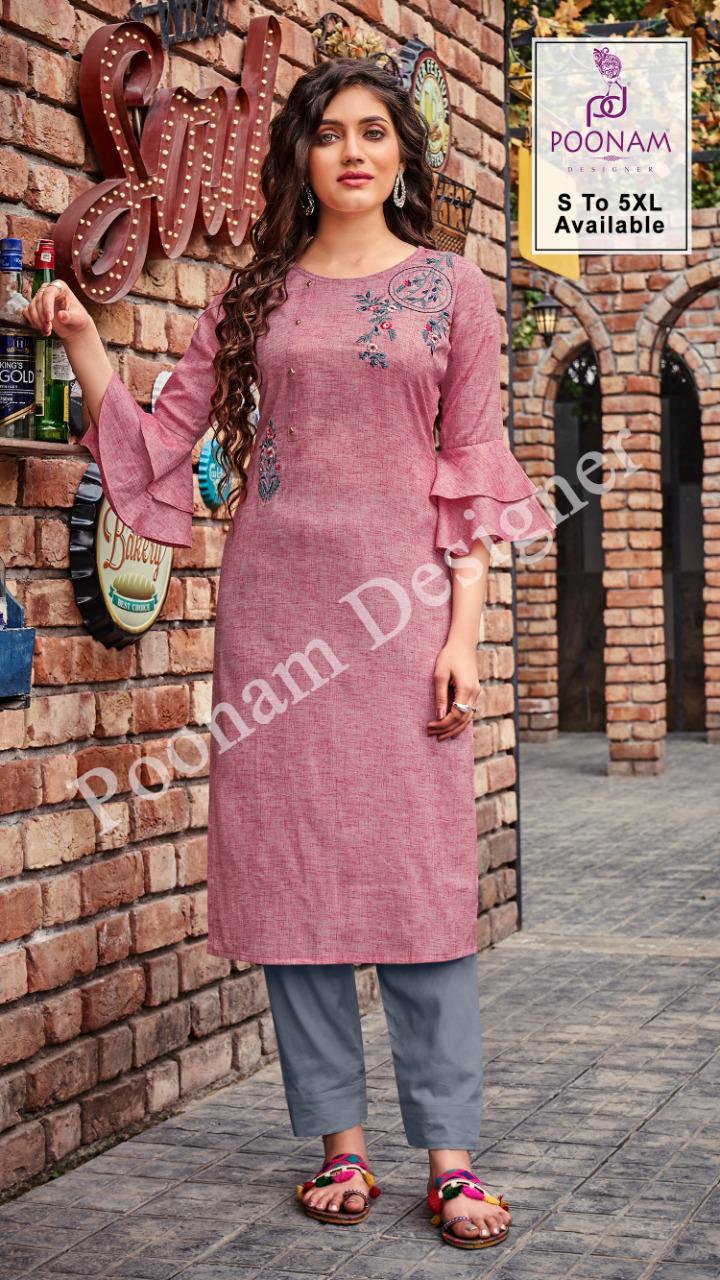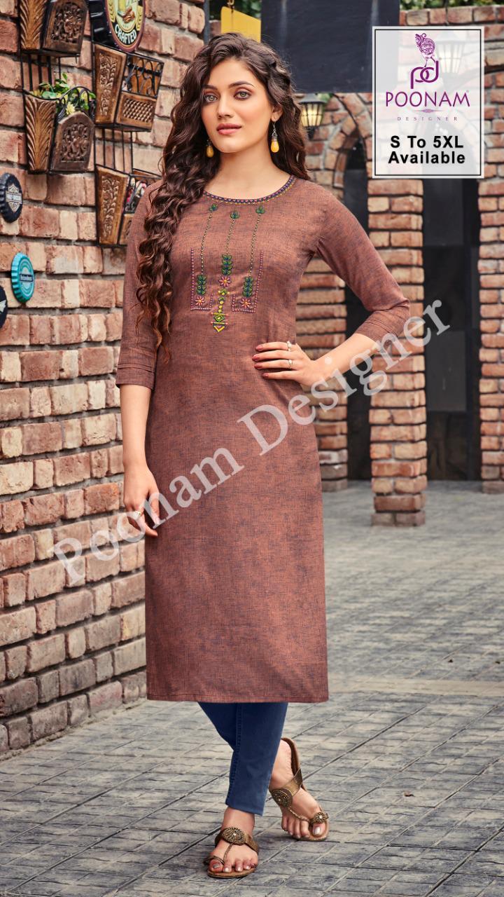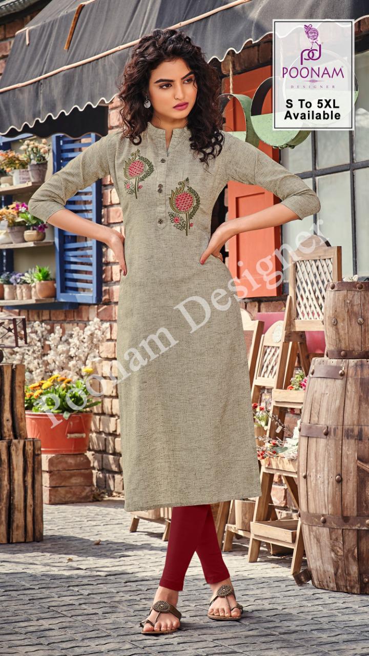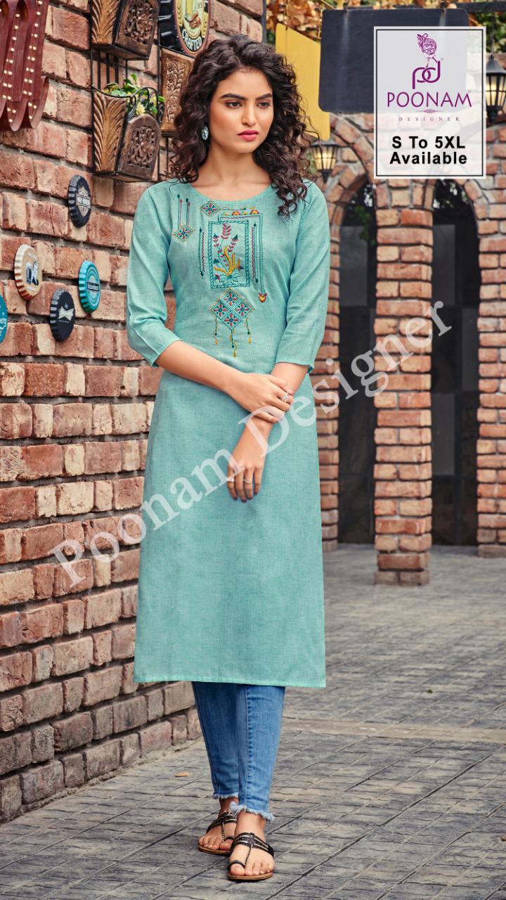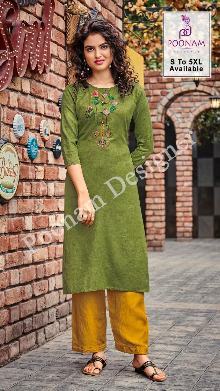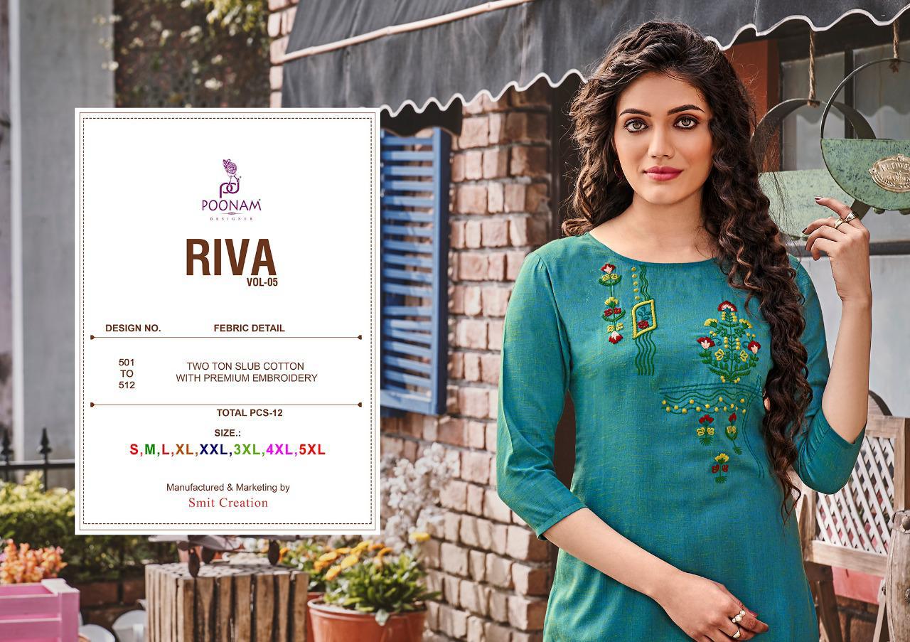*Poonam Designer®?*??? (Smit creation) � *Riva Vol-05*� Top (kurti)- Two ton slub cotton with Premium embroidery ? work. Size ?? S,M,L,XL, XXl,3xl,4xl,5xl. Dispach - 24/03/2021 ? 299/- per pcs Set to set GST 5 Percent Extra |