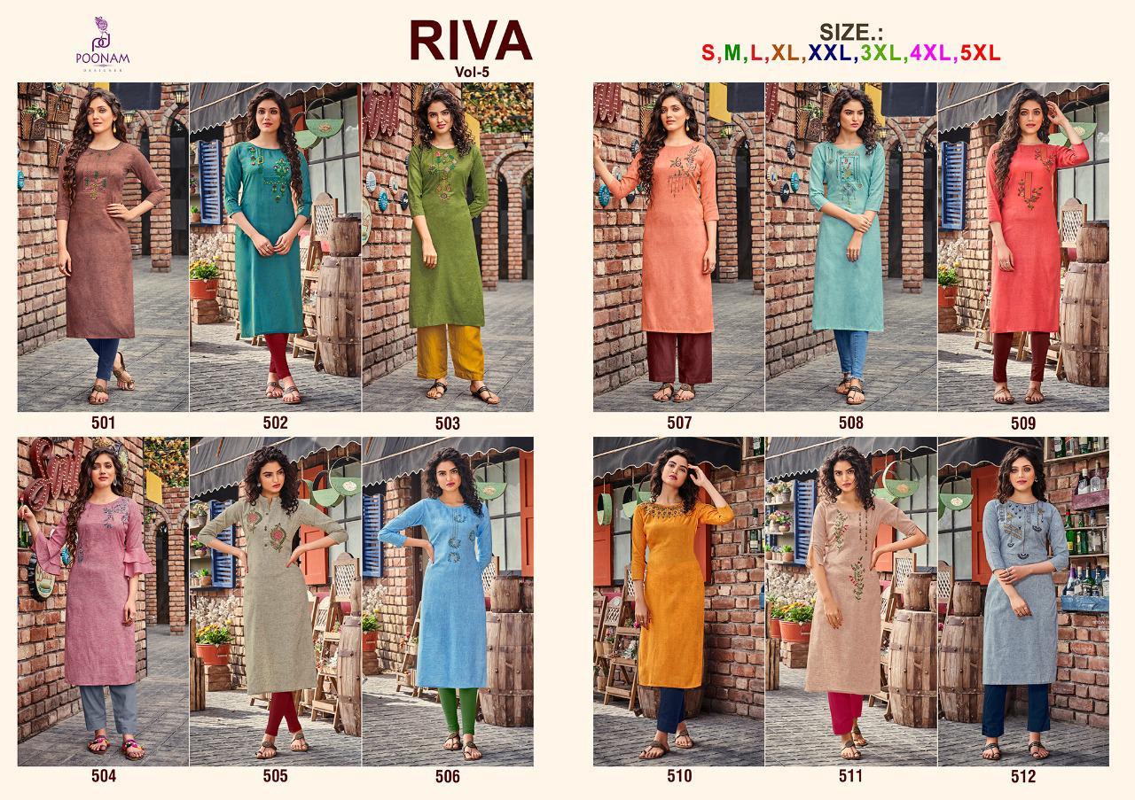 Buy Online Riva Vol 5 By Poonam Designer Manufacturer Traders Surat 12 Pcs of Full Catalogue at Wholesale Price. Looking for Riva Vol 5 By Poonam Designer Manufacturer Traders Surat Full Catalouge at Best Price? Buy Now Riva Vol 5 By Poonam Designer Manufacturer Traders Surat at Wholesale Rate of Rs 3588 with Total 12 Pcs from authroized dealer and supplier of Poonam designer Brand. Cost of Each piece is just only Rs 299 which is very low and affordable price to resale the product in your retail store ,This is Surat based Wholesale Supplier & Dealer of Poonam designer Brand. Click on Brand name to Know more about Poonam designer Brand's products.Call or Whatsapp on 9898838984 for booking or enquiry