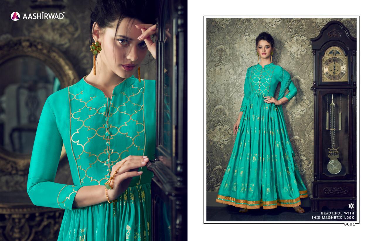 Buy Online Rivaah By Aashirwad 8091 Series Designer Party Wear Gown Collection Wholesale Dealer Surat 5 Pcs of Full Catalogue at Wholesale Price. Looking for Rivaah By Aashirwad 8091 Series Designer Party Wear Gown Collection Wholesale Dealer Surat Full Catalouge at Best Price? Buy Now Rivaah By Aashirwad 8091 Series Designer Party Wear Gown Collection Wholesale Dealer Surat at Wholesale Rate of Rs 7475 with Total 5 Pcs from authroized dealer and supplier of AASHIRWAD Brand. Cost of Each piece is just only Rs 1495 which is very low and affordable price to resale the product in your retail store ,This is Surat based Wholesale Supplier & Dealer of AASHIRWAD Brand. Click on Brand name to Know more about AASHIRWAD Brand's products.Call or Whatsapp on 9898838984 for booking or enquiry
