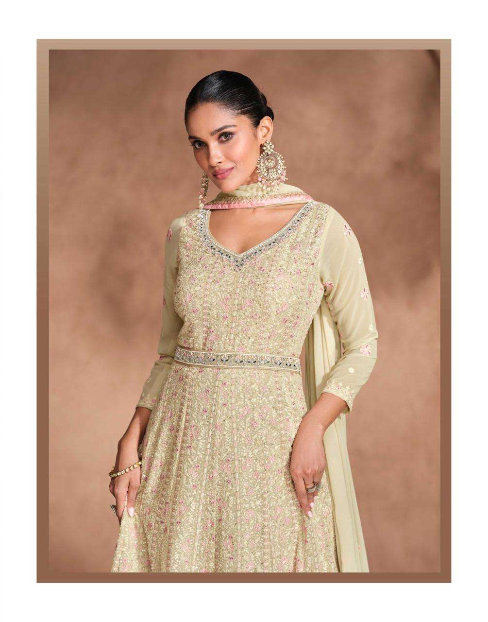 FABRIC - REAL GEROGETTE ( FULL HEAVY LOOK CHIKANKARI EMBROIDERED DRESSES WITH EMBROIDERED DUPATTA )