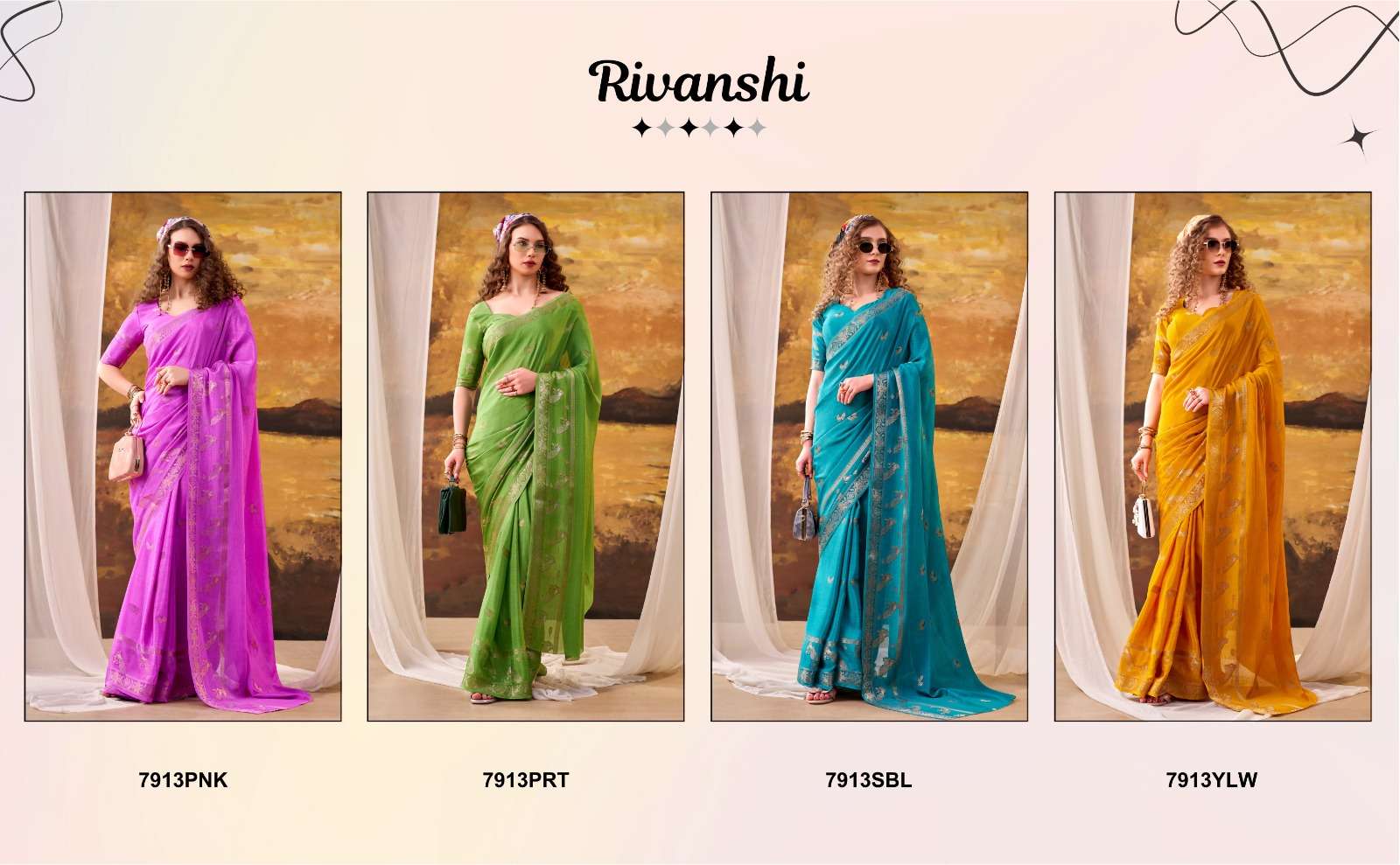 Buy Online RIVANSHI saree Collection manufacturer surat 4 Pcs of Full Catalogue at Wholesale Price. Looking for RIVANSHI saree Collection manufacturer surat Full Catalouge at Best Price? Buy Now RIVANSHI saree Collection manufacturer surat at Wholesale Rate of Rs 2396 with Total 4 Pcs from authroized dealer and supplier of BRAND'S Brand. Cost of Each piece is just only Rs 599 which is very low and affordable price to resale the product in your retail store ,This is Surat based Wholesale Supplier & Dealer of BRAND'S Brand. Click on Brand name to Know more about BRAND'S Brand's products.Call or Whatsapp on 9898838984 for booking or enquiry