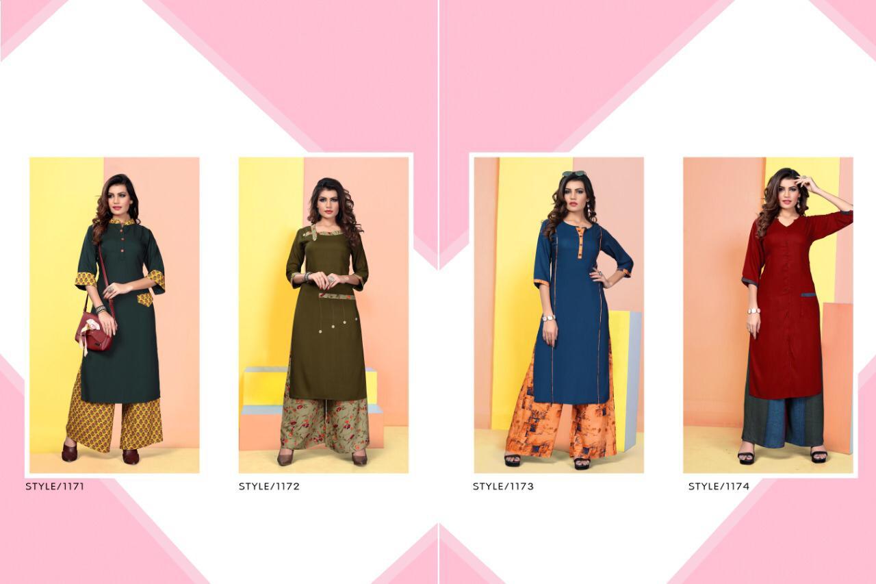 Rivaz By Vrunda Tex Kurtis With Plazzo Wholesale Supplier India