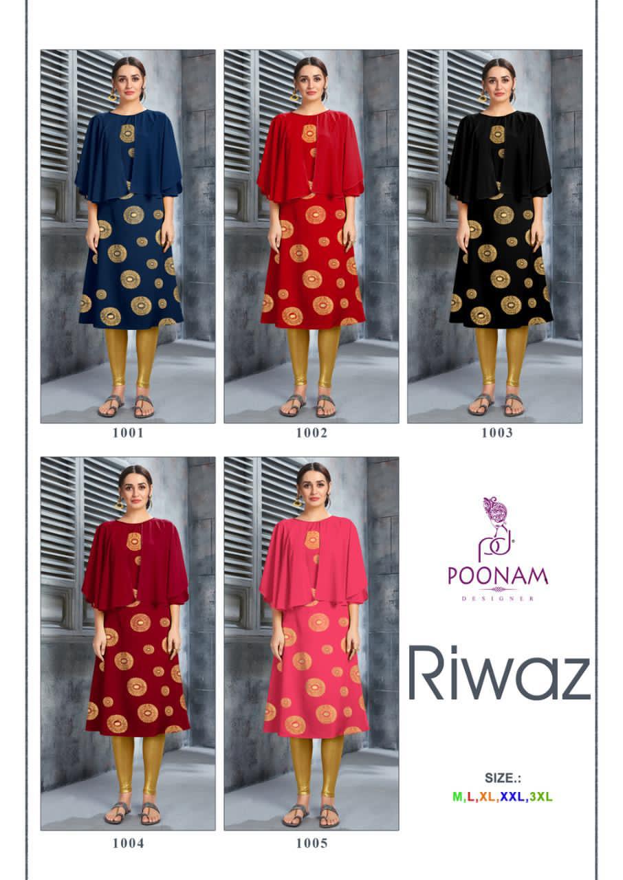 Buy Online Riwaz By Poonam Designer Manufacturer Traders Surat 5 Pcs of Full Catalogue at Wholesale Price. Looking for Riwaz By Poonam Designer Manufacturer Traders Surat Full Catalouge at Best Price? Buy Now Riwaz By Poonam Designer Manufacturer Traders Surat at Wholesale Rate of Rs 1625 with Total 5 Pcs from authroized dealer and supplier of Poonam designer Brand. Cost of Each piece is just only Rs 325 which is very low and affordable price to resale the product in your retail store ,This is Surat based Wholesale Supplier & Dealer of Poonam designer Brand. Click on Brand name to Know more about Poonam designer Brand's products.Call or Whatsapp on 9898838984 for booking or enquiry
