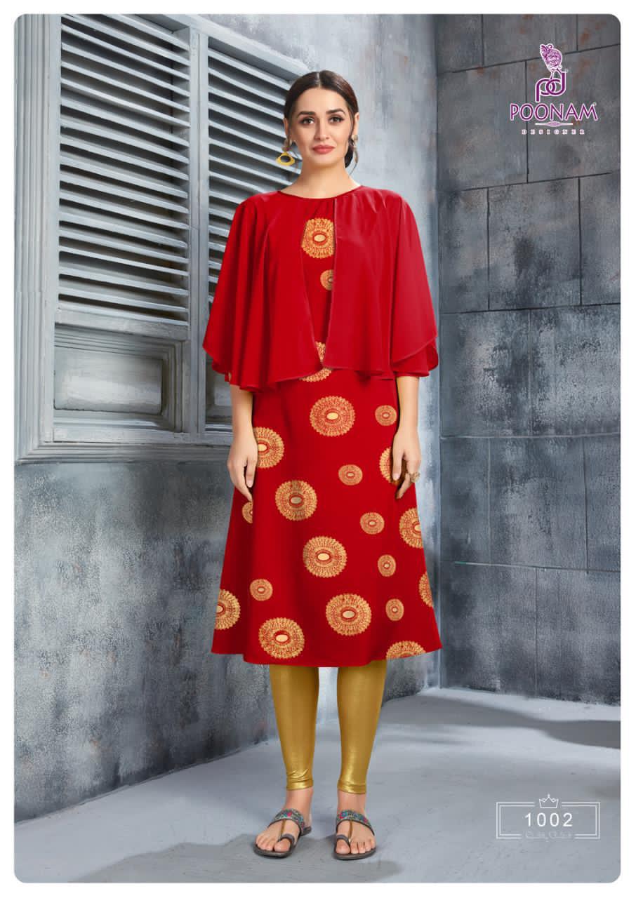 *Poonam designer*®???? (Smit creation) We are louching Our New catlog. *RIWAZ* Top (Gown)?- Premium soft crepe with Heavy Foil print. Over coat ? :- Georgette fabrics. Size ?? M,L,Xl, xxl,3XL. Concept :- Jacket Style Kurti. ? 325/- Set to set. GST 5 Percent Extra. Delivery from tomorrow |