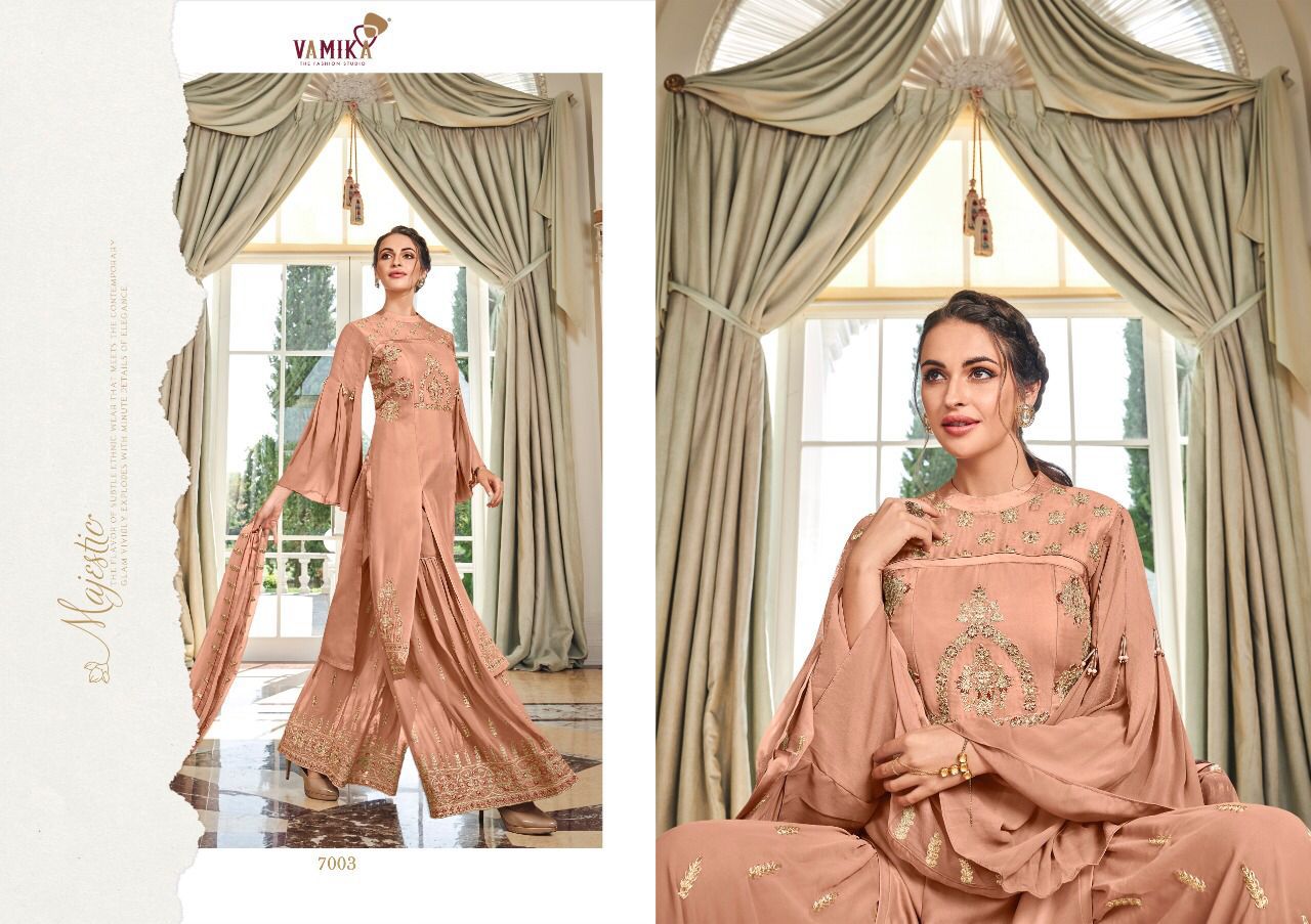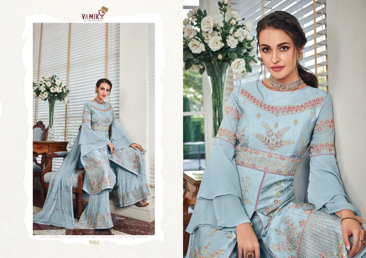 Buy Online Riyaaz By Vamika Heavy Designer Top Plazo With Dupatta Wholesaler Supplier From Surat 5 Pcs of Full Catalogue at Wholesale Price. Looking for Riyaaz By Vamika Heavy Designer Top Plazo With Dupatta Wholesaler Supplier From Surat Full Catalouge at Best Price? Buy Now Riyaaz By Vamika Heavy Designer Top Plazo With Dupatta Wholesaler Supplier From Surat at Wholesale Rate of Rs 9475 with Total 5 Pcs from authroized dealer and supplier of Brand. Cost of Each piece is just only Rs 1895 which is very low and affordable price to resale the product in your retail store ,This is Surat based Wholesale Supplier & Dealer of Brand. Click on Brand name to Know more about Brand's products.Call or Whatsapp on 9898838984 for booking or enquiry