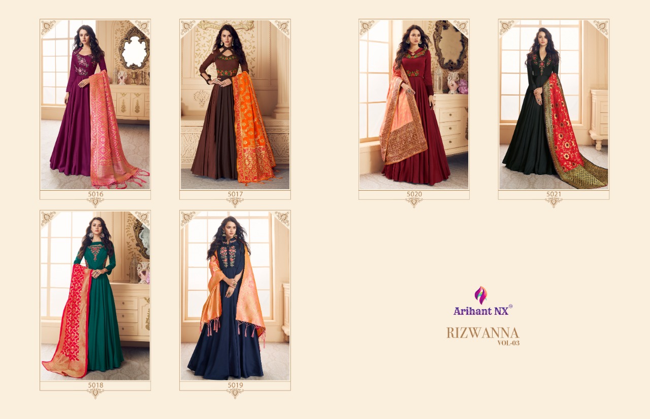 Rizwanna Vol 3 By Arihant Nx 5016 Series Fancy Party Wear Gown Suit Collection Wholesaler Surat