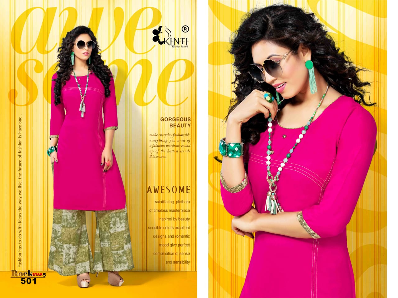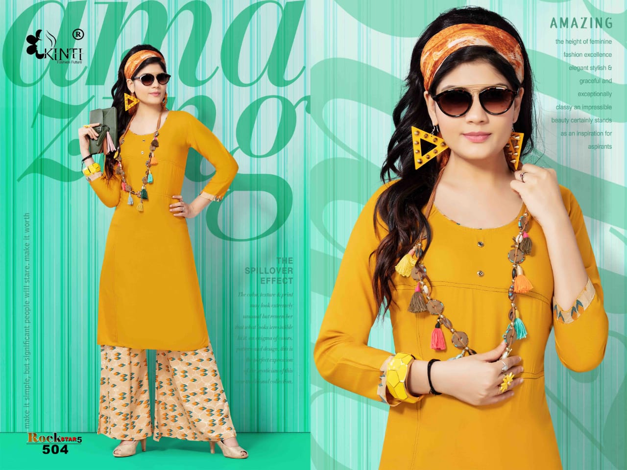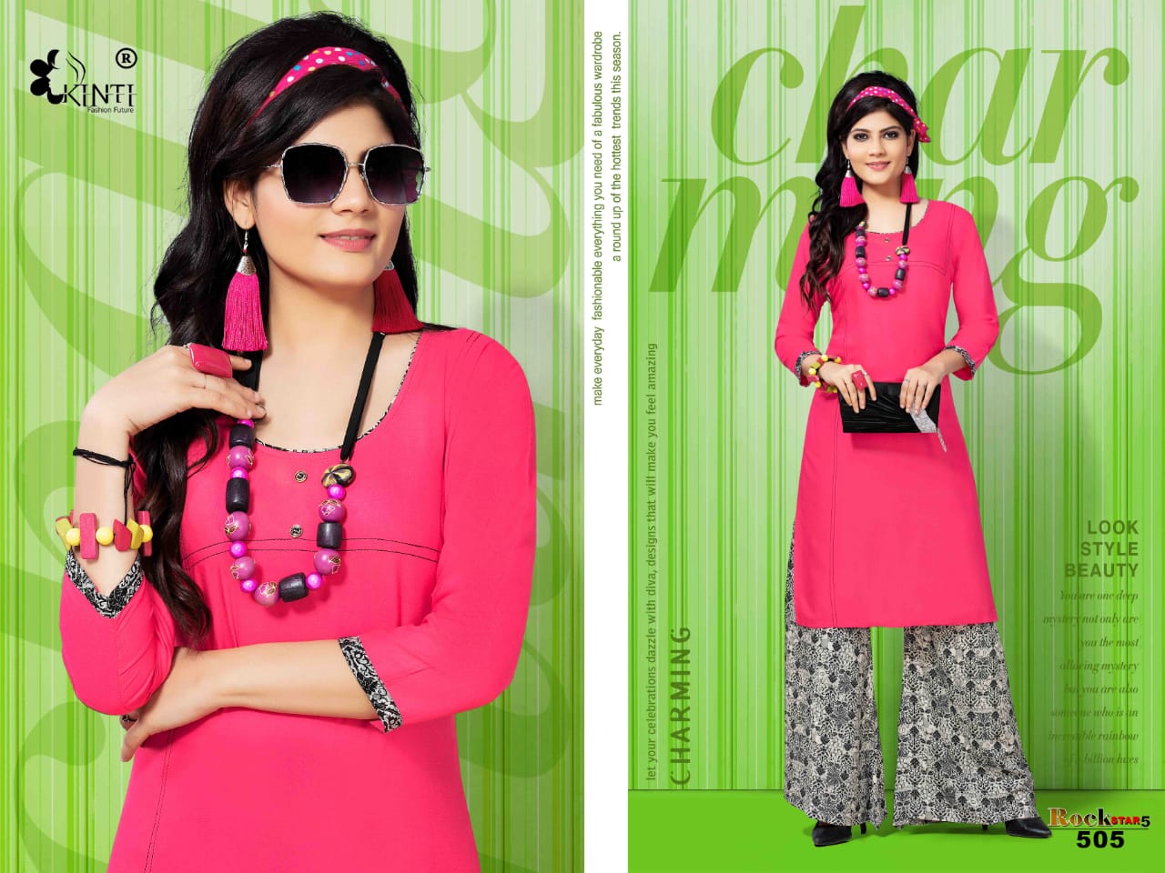 Rock Star 5 By Kinti 501 Series Fancy Reyon Kurti With Plazzo Collection Wholesaler Surat