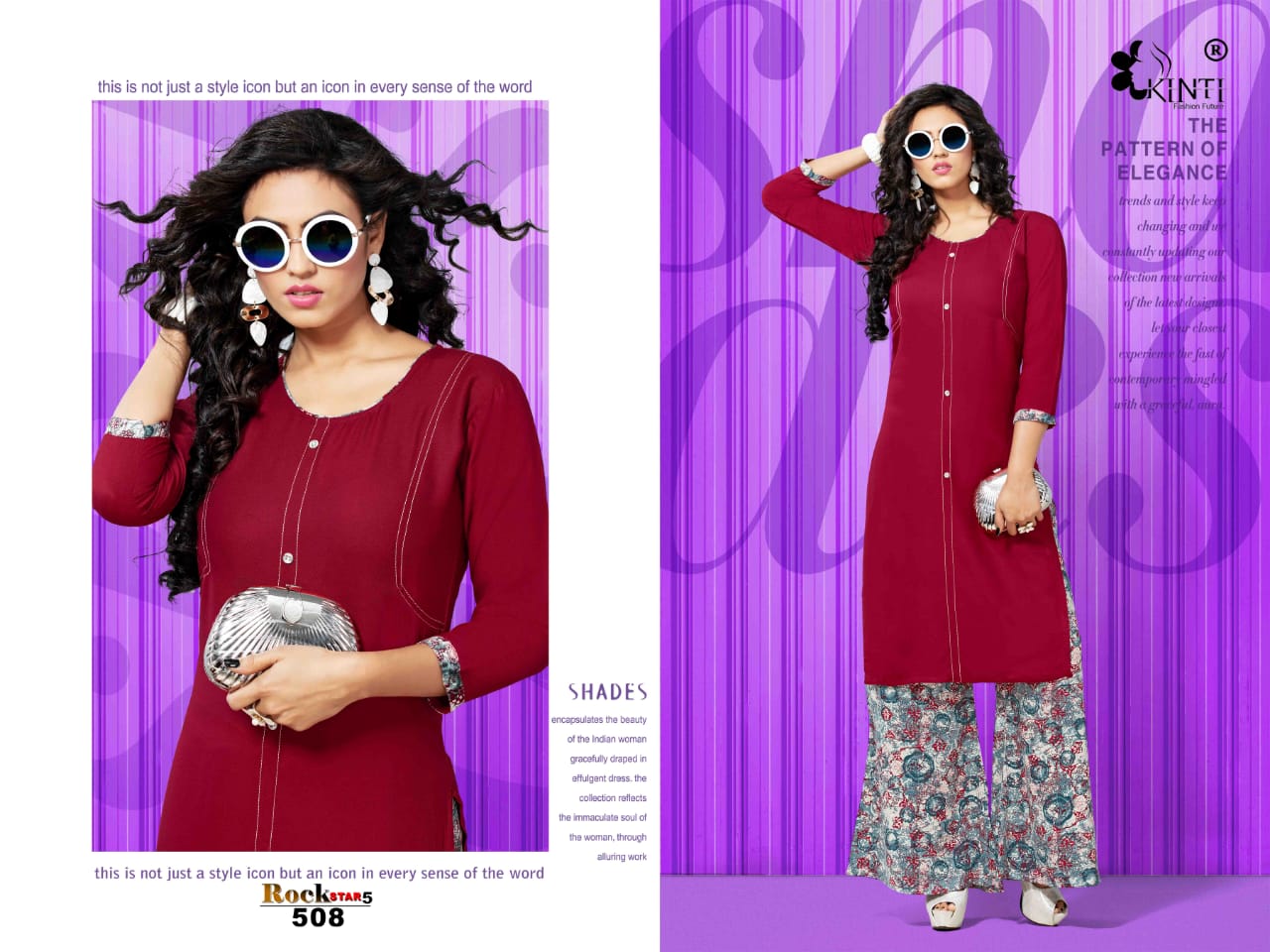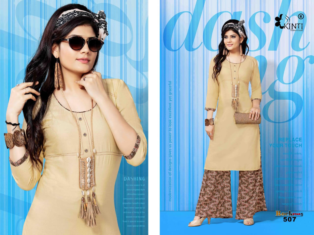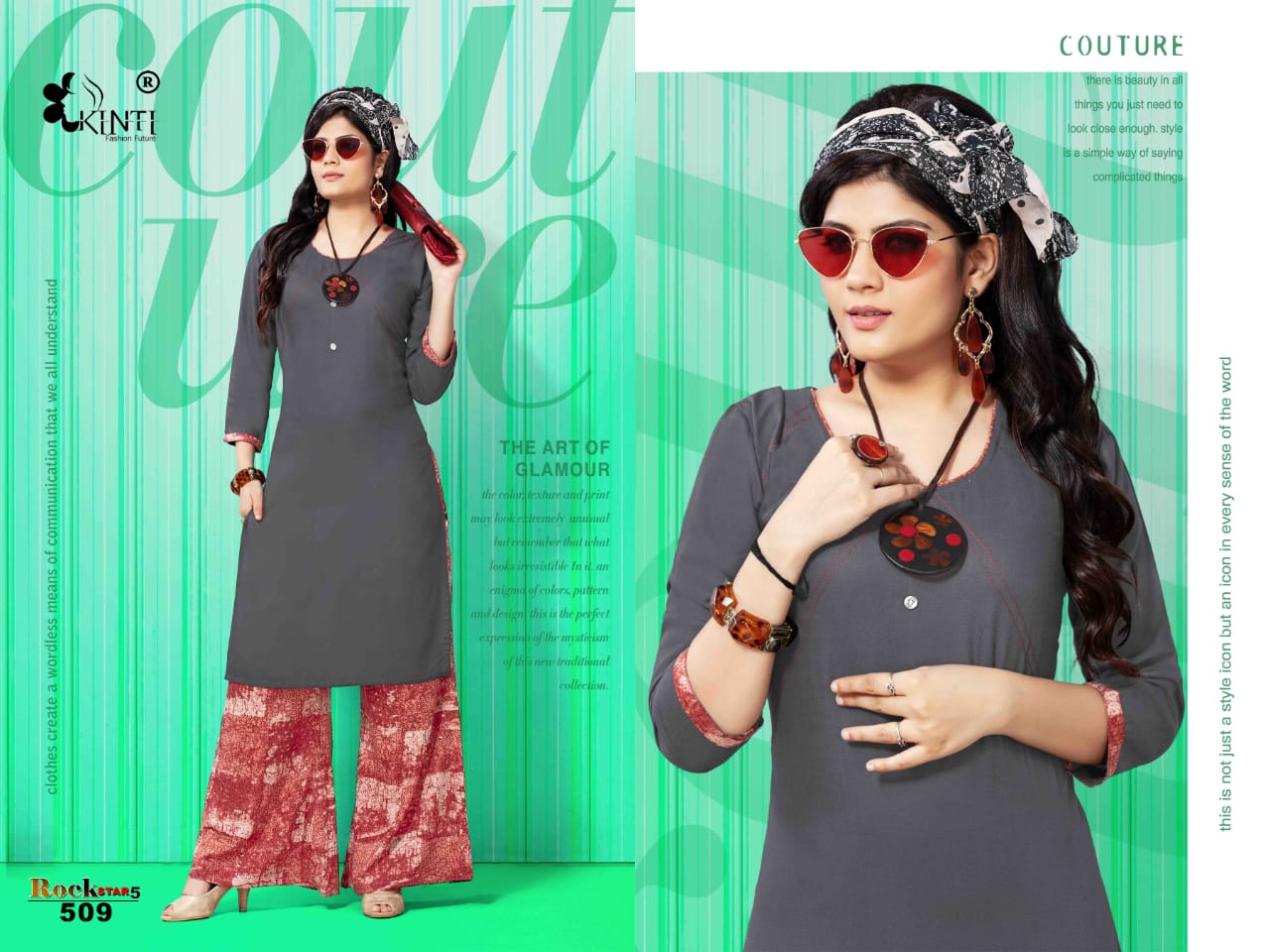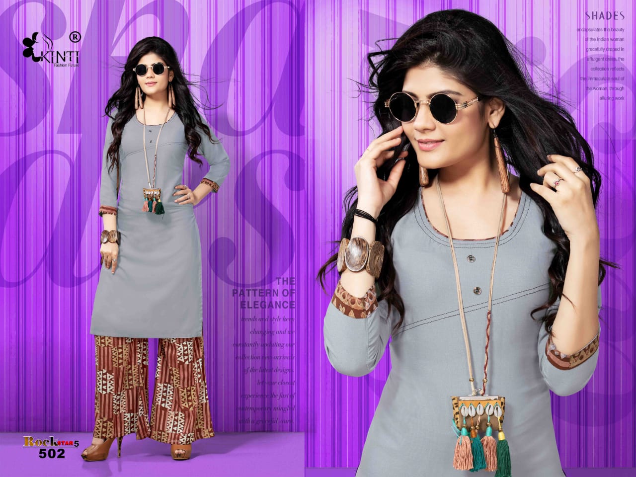 Rock Star 5 By Kinti 501 Series Fancy Reyon Kurti With Plazzo Collection Wholesaler Surat
