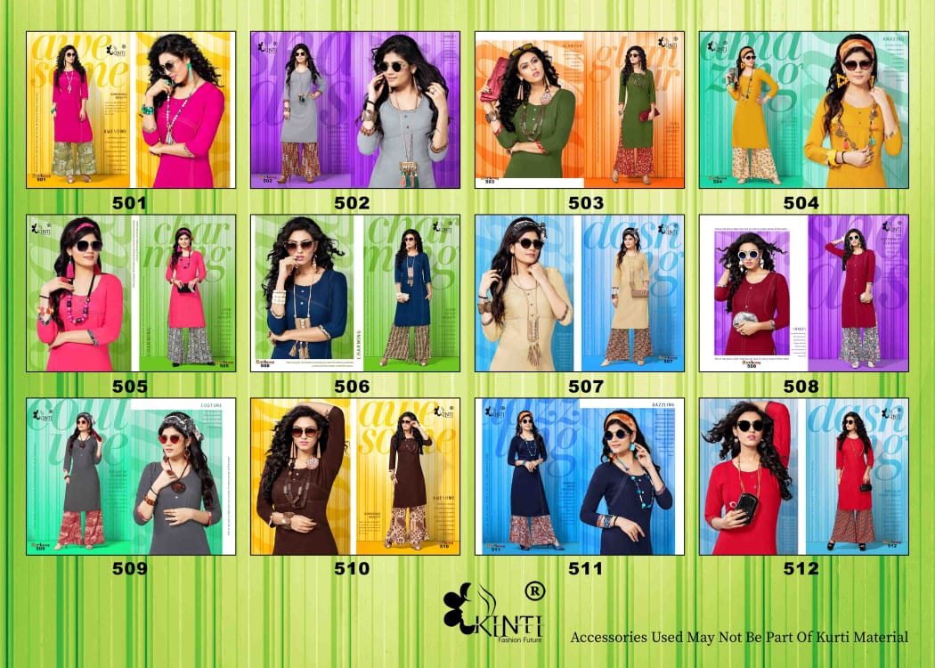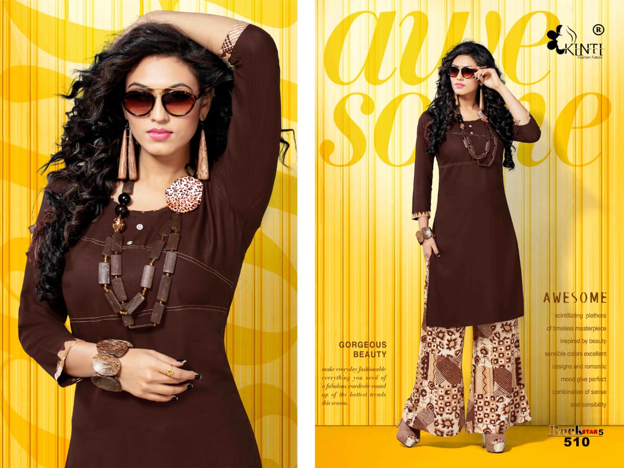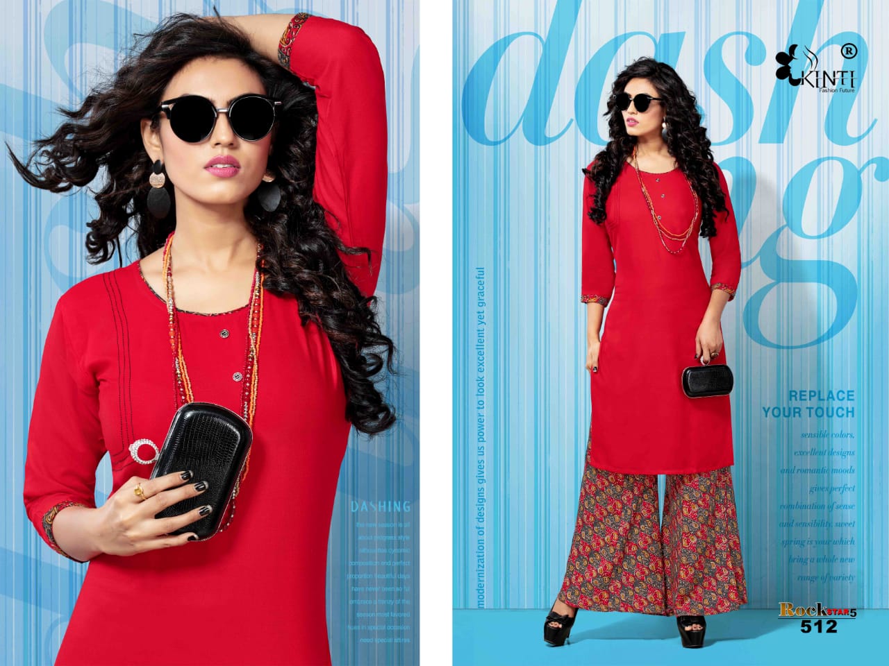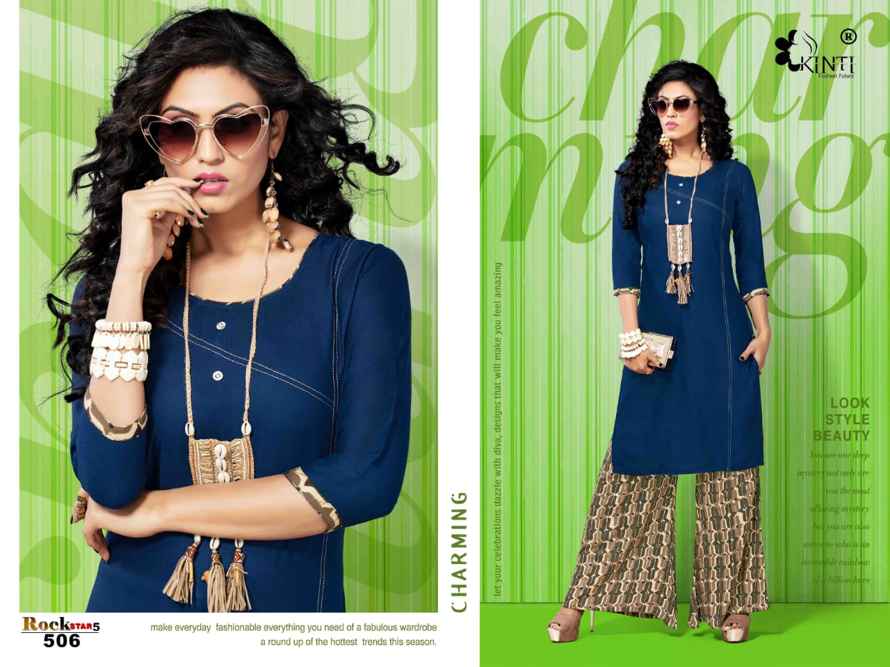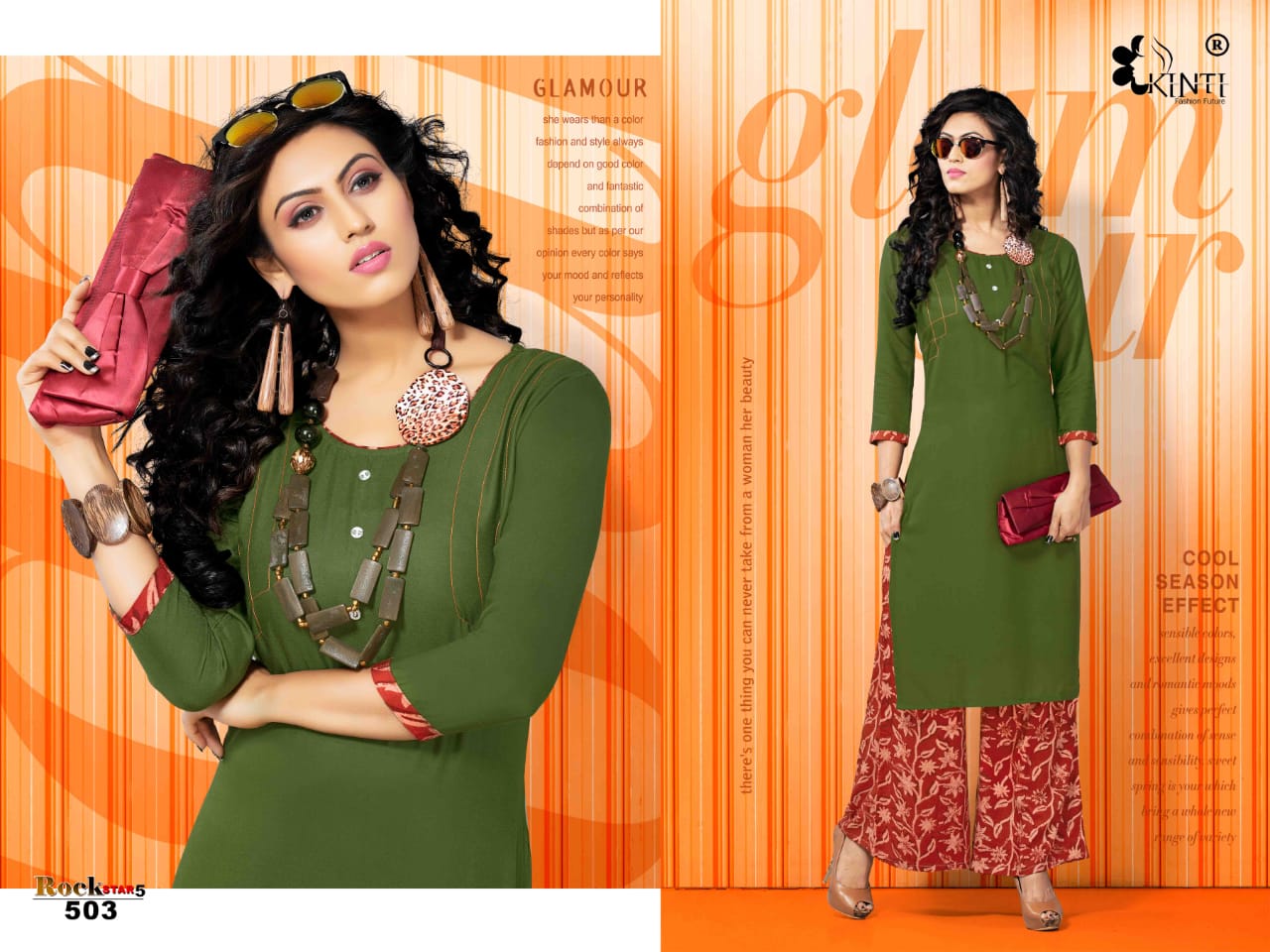 Buy Online Rock Star 5 By Kinti 501 Series Fancy Reyon Kurti With Plazzo Collection Wholesaler Surat 12 Pcs of Full Catalogue at Wholesale Price. Looking for Rock Star 5 By Kinti 501 Series Fancy Reyon Kurti With Plazzo Collection Wholesaler Surat Full Catalouge at Best Price? Buy Now Rock Star 5 By Kinti 501 Series Fancy Reyon Kurti With Plazzo Collection Wholesaler Surat at Wholesale Rate of Rs 6420 with Total 12 Pcs from authroized dealer and supplier of Brand. Cost of Each piece is just only Rs 535 which is very low and affordable price to resale the product in your retail store ,This is Surat based Wholesale Supplier & Dealer of Brand. Click on Brand name to Know more about Brand's products.Call or Whatsapp on 9898838984 for booking or enquiry
