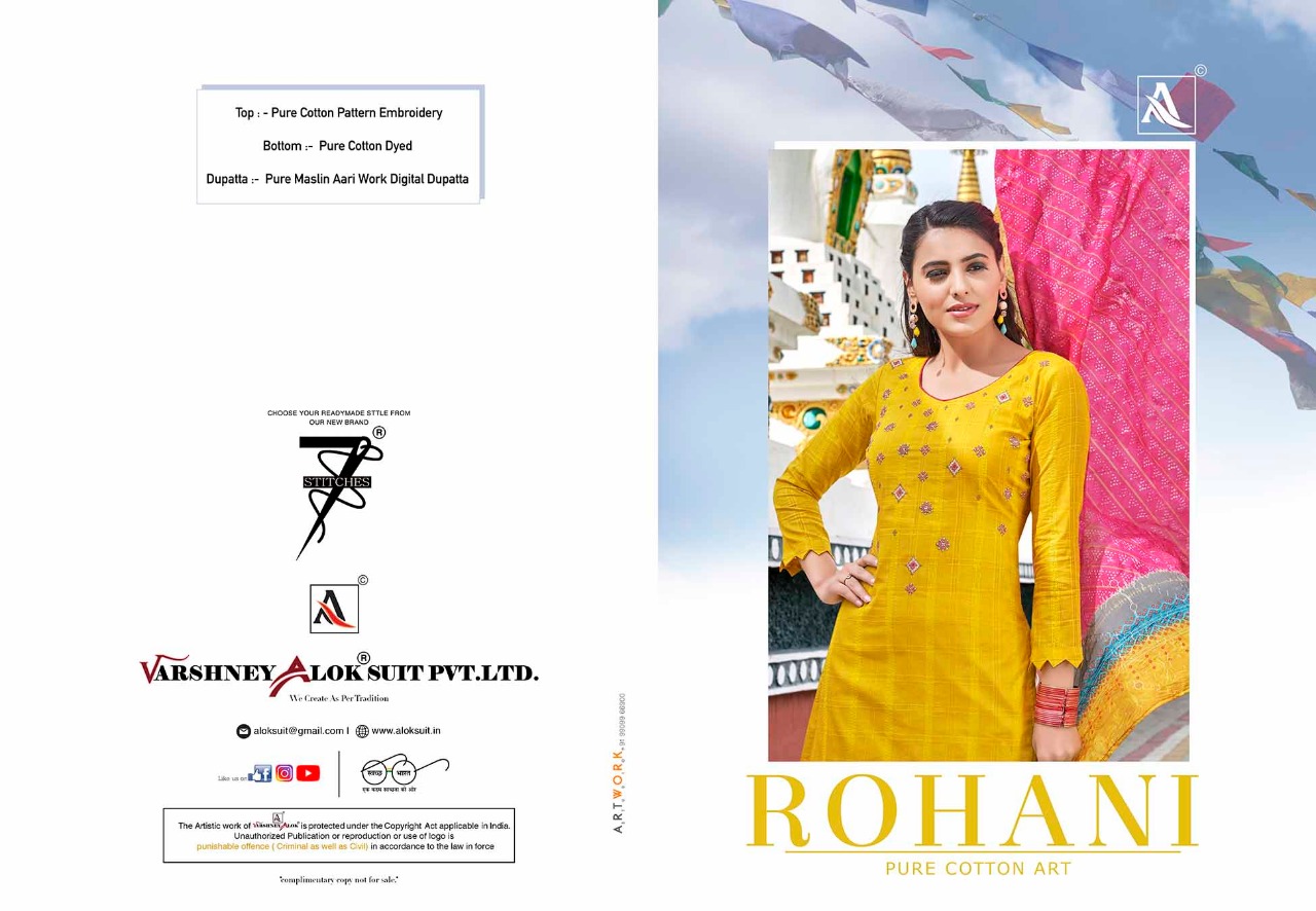Buy Online Rohani By Alok Suits Cotton Dress Material Wholesale Supplier India 8 Pcs of Full Catalogue at Wholesale Price. Looking for Rohani By Alok Suits Cotton Dress Material Wholesale Supplier India Full Catalouge at Best Price? Buy Now Rohani By Alok Suits Cotton Dress Material Wholesale Supplier India at Wholesale Rate of Rs 6200 with Total 8 Pcs from authroized dealer and supplier of Brand. Cost of Each piece is just only Rs 775 which is very low and affordable price to resale the product in your retail store ,This is Surat based Wholesale Supplier & Dealer of Brand. Click on Brand name to Know more about Brand's products.Call or Whatsapp on 9898838984 for booking or enquiry