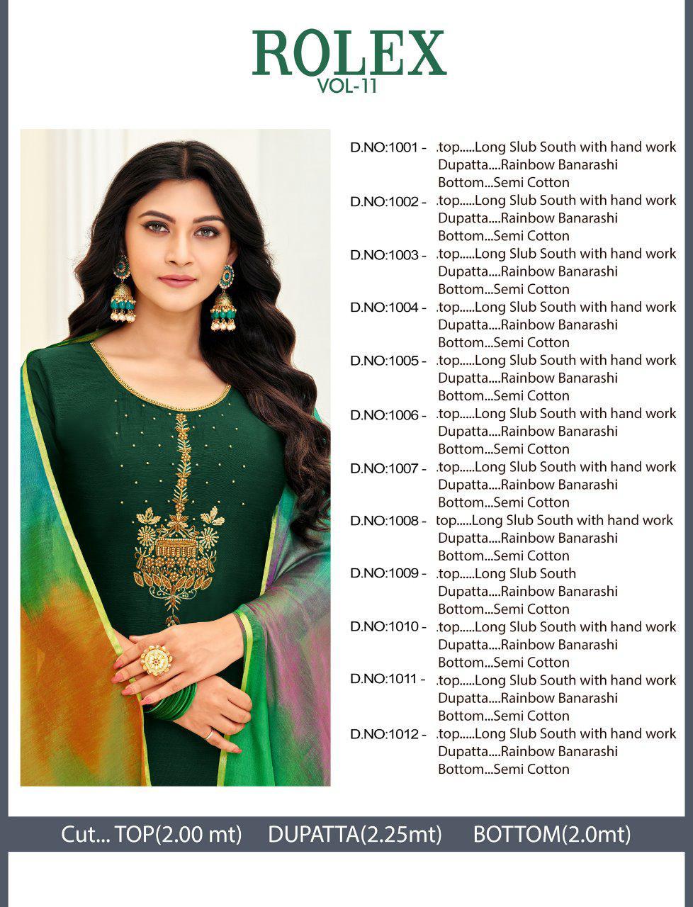 Buy Online Rolex Vol 11 By Shagun Dress Materials Wholesale Supplier And Dealer Gujarat 12 Pcs of Full Catalogue at Wholesale Price. Looking for Rolex Vol 11 By Shagun Dress Materials Wholesale Supplier And Dealer Gujarat Full Catalouge at Best Price? Buy Now Rolex Vol 11 By Shagun Dress Materials Wholesale Supplier And Dealer Gujarat at Wholesale Rate of Rs 8100 with Total 12 Pcs from authroized dealer and supplier of Brand. Cost of Each piece is just only Rs 675 which is very low and affordable price to resale the product in your retail store ,This is Surat based Wholesale Supplier & Dealer of Brand. Click on Brand name to Know more about Brand's products.Call or Whatsapp on 9898838984 for booking or enquiry
