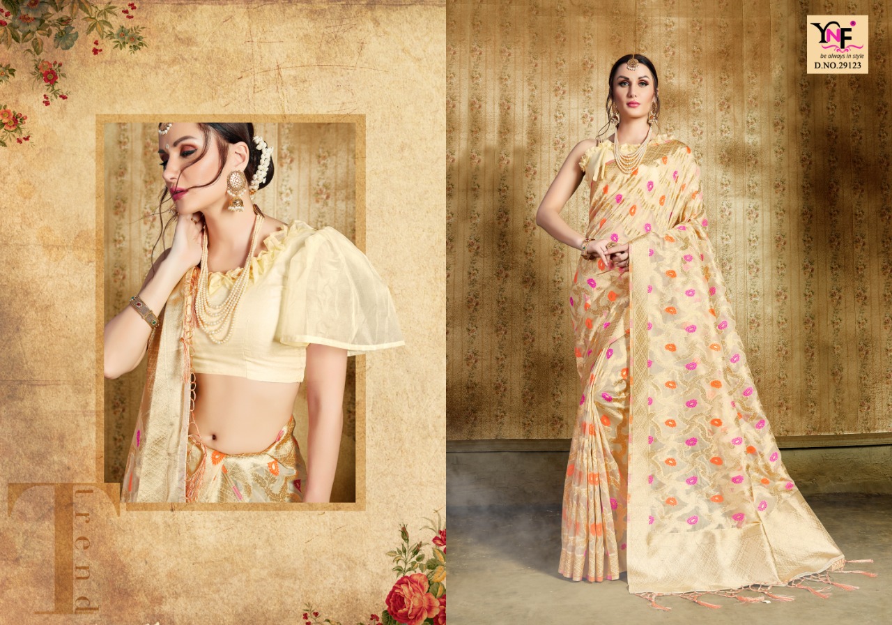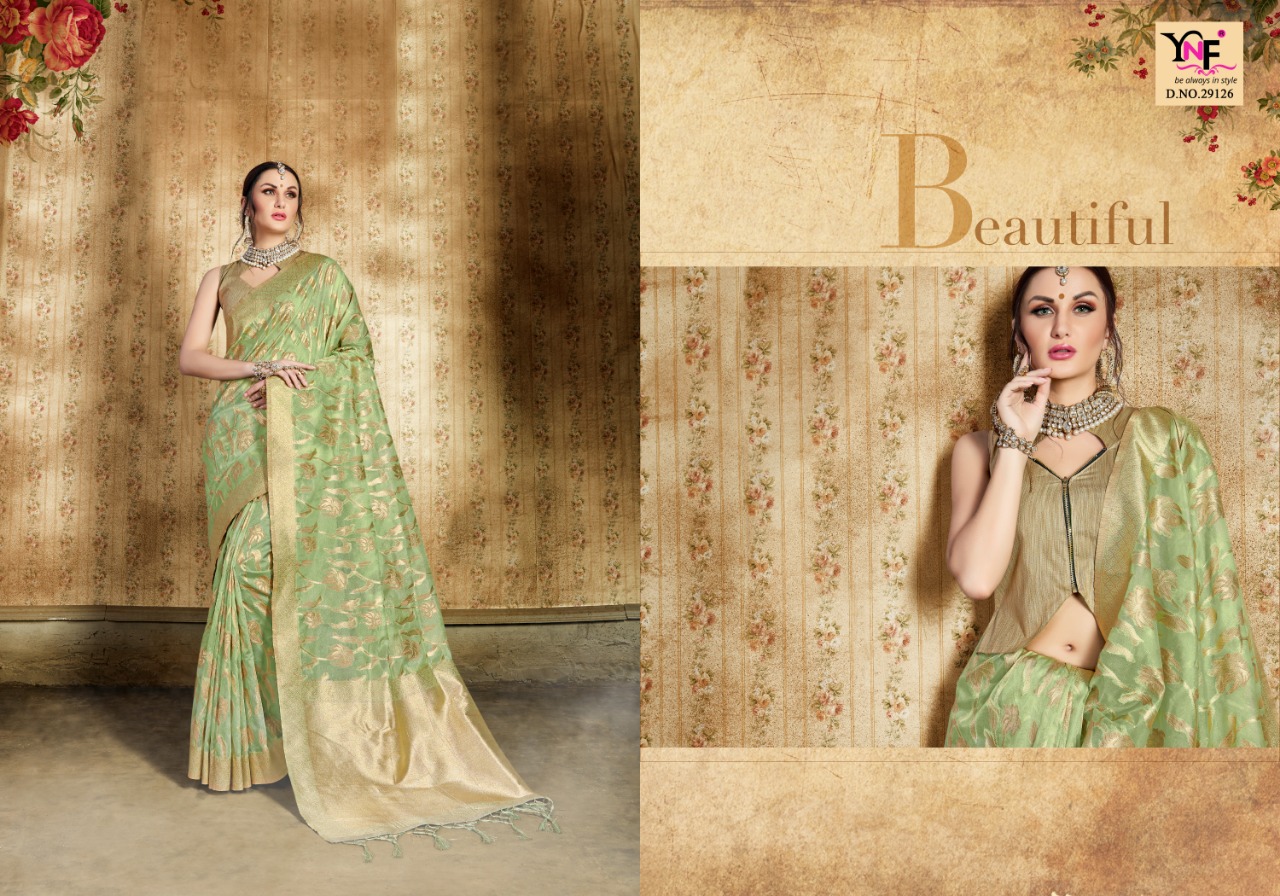 New Catalog launch *YNF Presents* PURE NYLON ORGENZA SILK IN LIGHT PASTEL SHADES Catalog Name - *ROLIANA* Product Â? Saree Fabric Details Â? NYLON ORGENZA SILK Price Â? Rs. *2170 per pcs * Set only .( GST : 5% EXTRA ) No of Pieces Â? 6 Delivery from today Regards *YNF TEAM* *Silk Saree Chaiye ??? YNF Se Lelo Â?.* |
