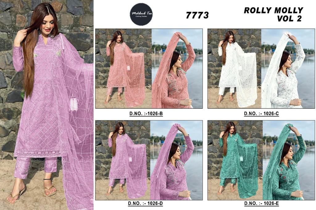 Buy Online Rolly Molly Vol 2 Mehboob Tex 4 Pcs of Full Catalogue at Wholesale Price. Looking for Rolly Molly Vol 2 Mehboob Tex Full Catalouge at Best Price? Buy Now Rolly Molly Vol 2 Mehboob Tex at Wholesale Rate of Rs 4200 with Total 4 Pcs from authroized dealer and supplier of Brand. Cost of Each piece is just only Rs 1050 which is very low and affordable price to resale the product in your retail store ,This is Surat based Wholesale Supplier & Dealer of Brand. Click on Brand name to Know more about Brand's products.Call or Whatsapp on 9898838984 for booking or enquiry