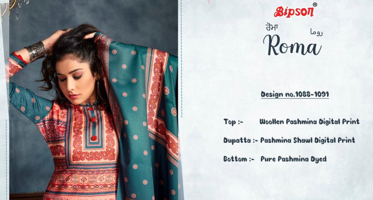 Buy Online Roma By Bipson Pashmina Dress Materials Wholesale Supplier Surat 4 Pcs of Full Catalogue at Wholesale Price. Looking for Roma By Bipson Pashmina Dress Materials Wholesale Supplier Surat Full Catalouge at Best Price? Buy Now Roma By Bipson Pashmina Dress Materials Wholesale Supplier Surat at Wholesale Rate of Rs 2980 with Total 4 Pcs from authroized dealer and supplier of Brand. Cost of Each piece is just only Rs 745 which is very low and affordable price to resale the product in your retail store ,This is Surat based Wholesale Supplier & Dealer of Brand. Click on Brand name to Know more about Brand's products.Call or Whatsapp on 9898838984 for booking or enquiry