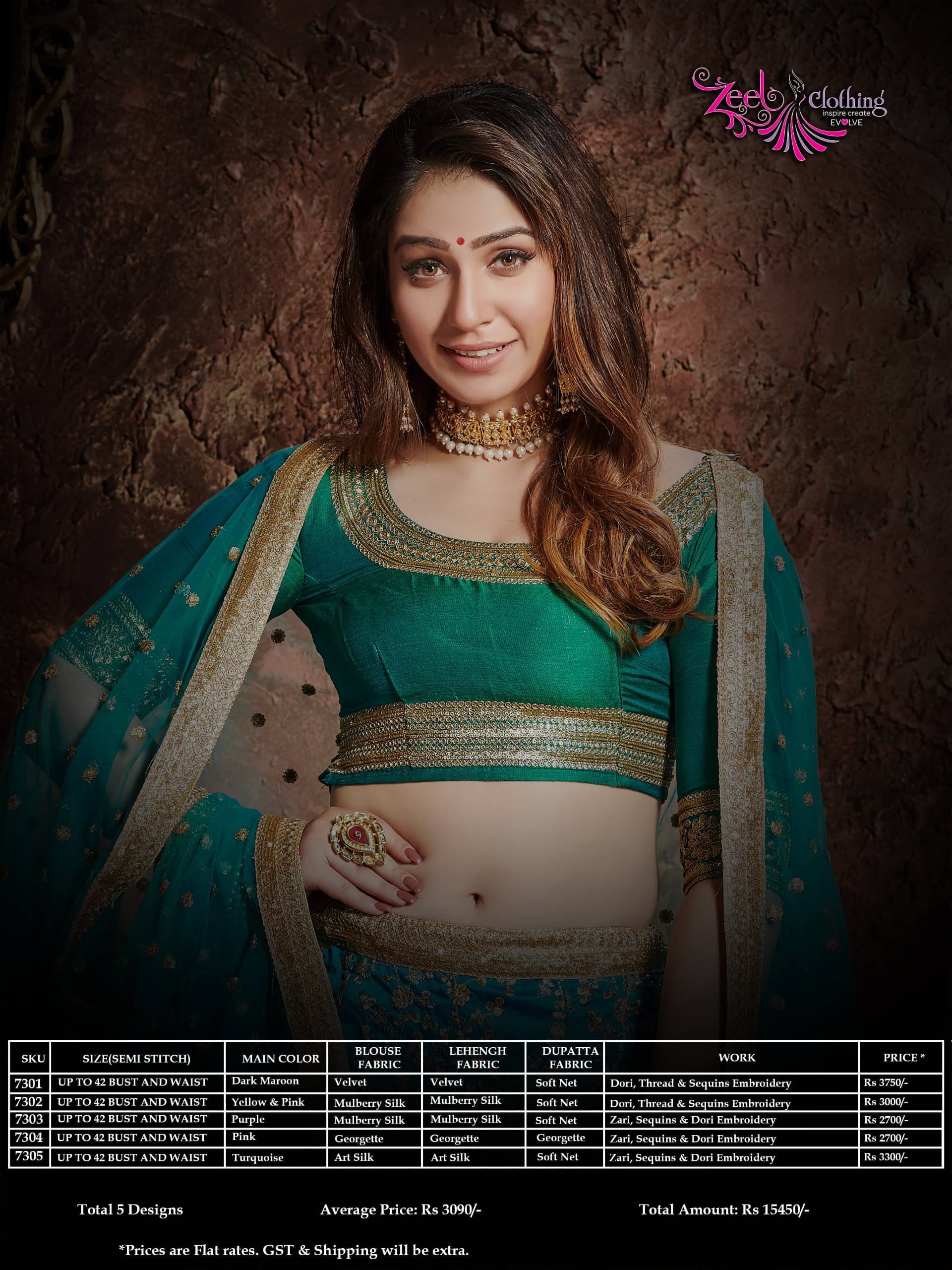Buy Online Romantic Vol 1 Series 7301 To 7305 By Zeel Clothing 5 Pcs of Full Catalogue at Wholesale Price. Looking for Romantic Vol 1 Series 7301 To 7305 By Zeel Clothing Full Catalouge at Best Price? Buy Now Romantic Vol 1 Series 7301 To 7305 By Zeel Clothing at Wholesale Rate of Rs 0 with Total 5 Pcs from authroized dealer and supplier of Brand. Cost of Each piece is just only Rs 0 which is very low and affordable price to resale the product in your retail store ,This is Surat based Wholesale Supplier & Dealer of Brand. Click on Brand name to Know more about Brand's products.Call or Whatsapp on 9898838984 for booking or enquiry