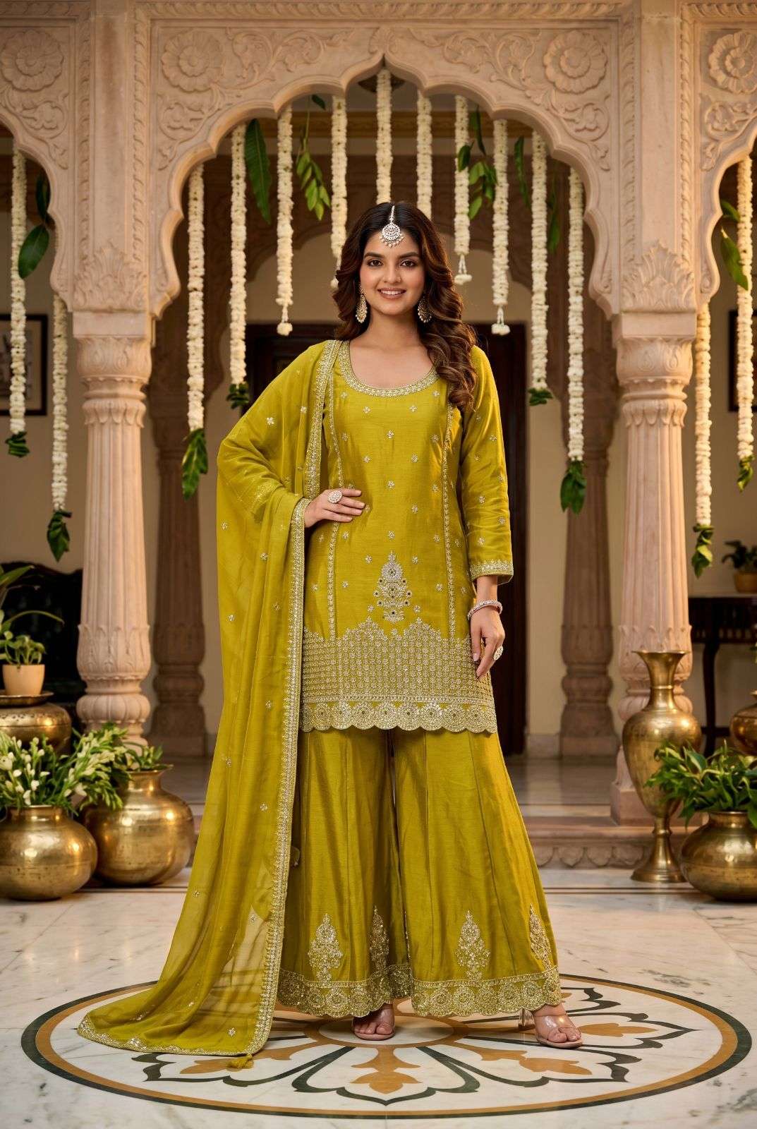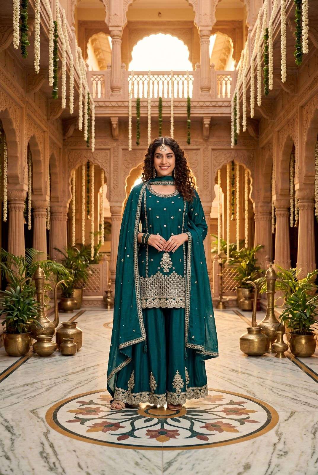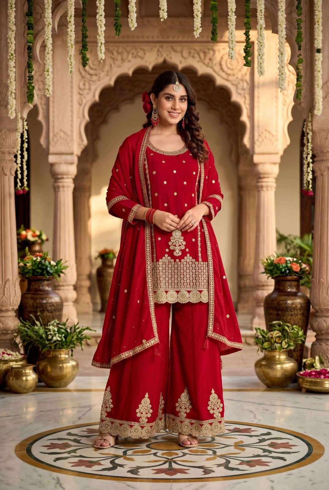 FABRIC - PREMIUM CHINON SILK ( HEAVY EMBROIDERED CHINON TOP WITH HAND EMBLISSIED MIRROR WORK WITH EMBROIDERED PLAZZO PANT AND EMBROIDERED AND HAND WORK DUPPTA )