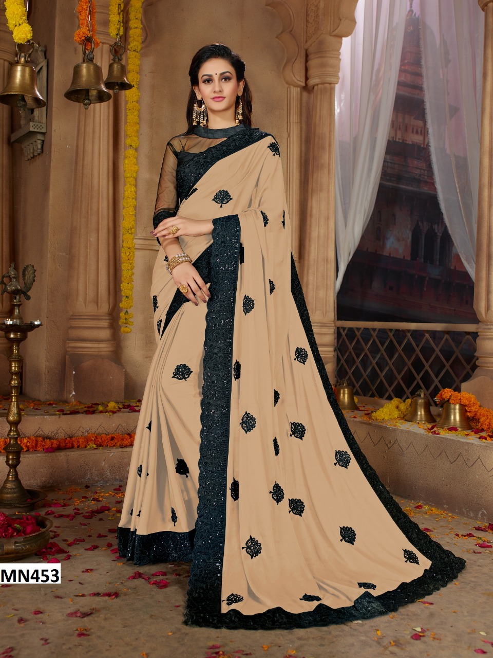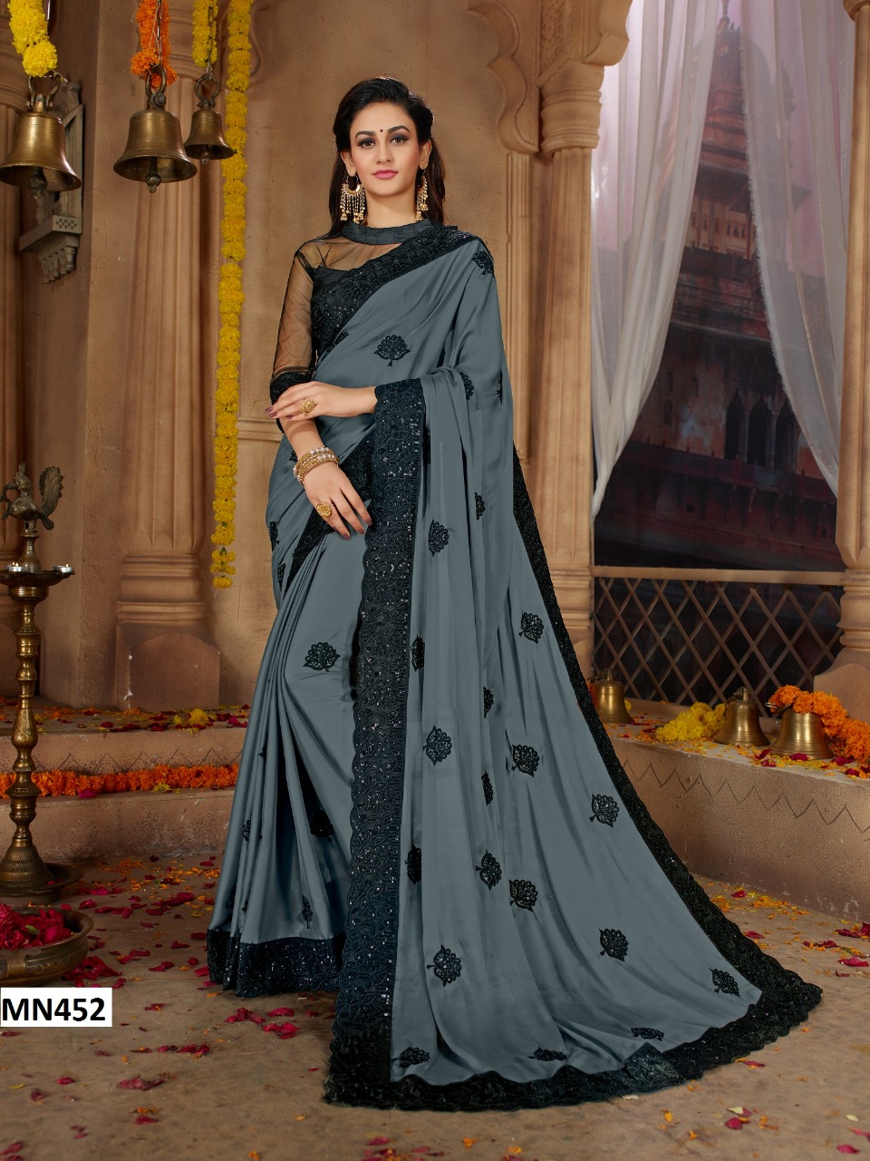 Roohi Hit Colour Vol 5 By Manohari Fancy Satin Georgette Party Wear Saree Collection Wholesaler Surat