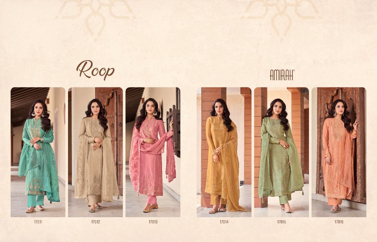 Buy Online Roop By Amirah Designer Suits Wholesale Suppliers And Dealer From India 6 Pcs of Full Catalogue at Wholesale Price. Looking for Roop By Amirah Designer Suits Wholesale Suppliers And Dealer From India Full Catalouge at Best Price? Buy Now Roop By Amirah Designer Suits Wholesale Suppliers And Dealer From India at Wholesale Rate of Rs 11370 with Total 6 Pcs from authroized dealer and supplier of Amirah Brand. Cost of Each piece is just only Rs 1895 which is very low and affordable price to resale the product in your retail store ,This is Surat based Wholesale Supplier & Dealer of Amirah Brand. Click on Brand name to Know more about Amirah Brand's products.Call or Whatsapp on 9898838984 for booking or enquiry