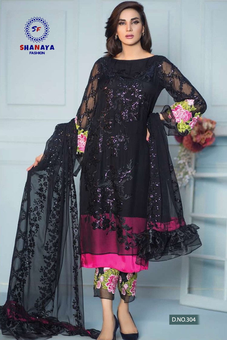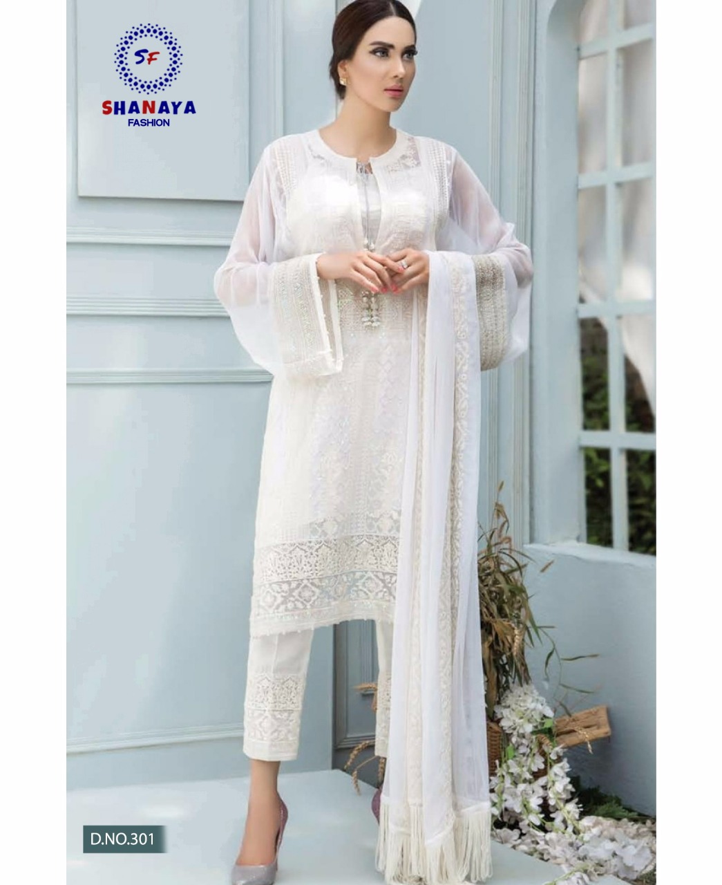 Buy Online Rose Art Nx By Shanaya 301 Series Fancy Georgette Pakistani Style Suit Catlog Wholesale Dealer Surat 3 Pcs of Full Catalogue at Wholesale Price. Looking for Rose Art Nx By Shanaya 301 Series Fancy Georgette Pakistani Style Suit Catlog Wholesale Dealer Surat Full Catalouge at Best Price? Buy Now Rose Art Nx By Shanaya 301 Series Fancy Georgette Pakistani Style Suit Catlog Wholesale Dealer Surat at Wholesale Rate of Rs 3597 with Total 3 Pcs from authroized dealer and supplier of Brand. Cost of Each piece is just only Rs 1199 which is very low and affordable price to resale the product in your retail store ,This is Surat based Wholesale Supplier & Dealer of Brand. Click on Brand name to Know more about Brand's products.Call or Whatsapp on 9898838984 for booking or enquiry