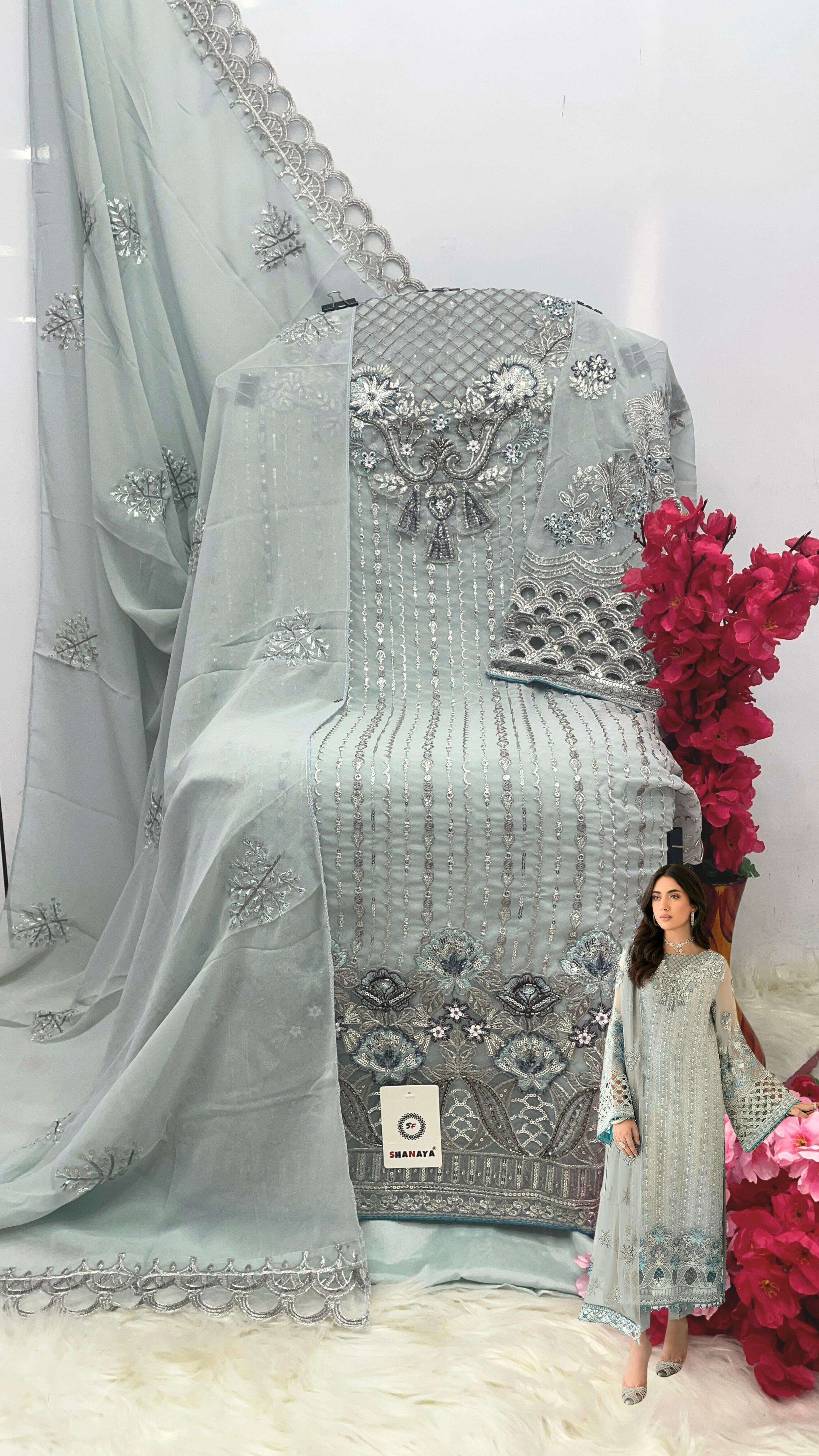 _*Top*_🔹 *FOX GEORGETTE* EMBROIDERY SEQUENCE WORK & ADDITIONAL *HAND KHATALI HANDWORK*