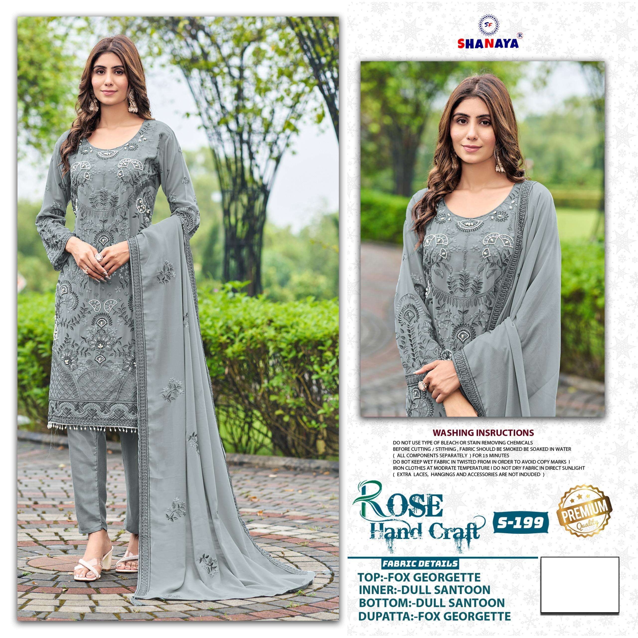 ROSE HAND CRAFT D NO S 199 By SHANAYA FOX GEORGETTE suit collection manufacturer surat