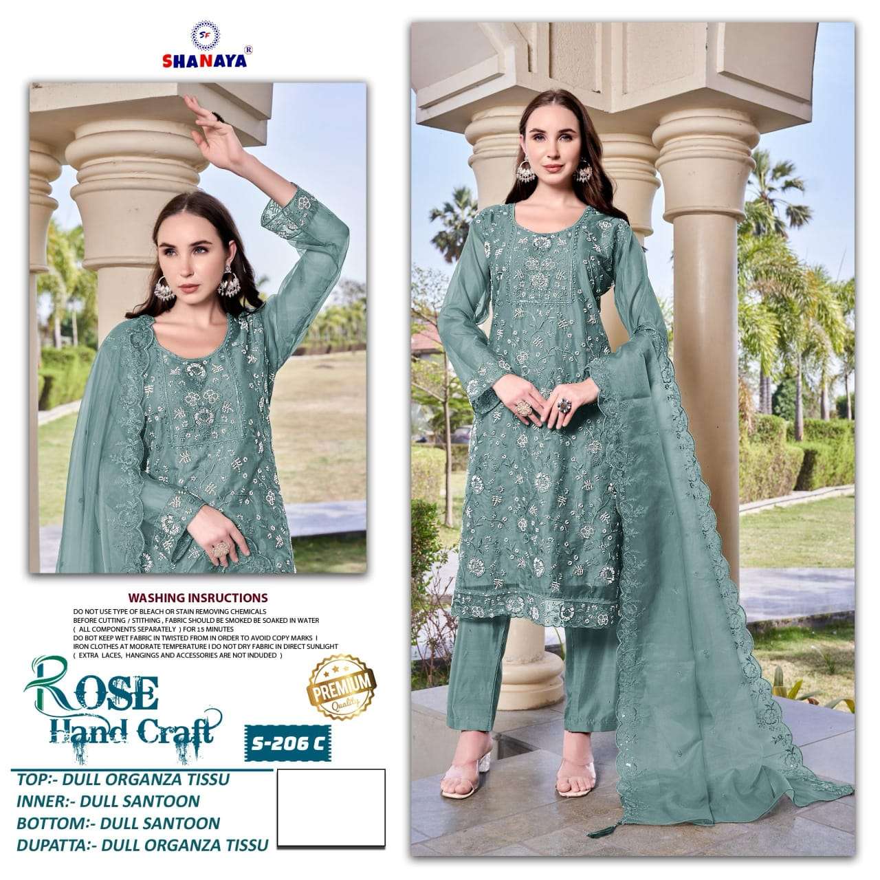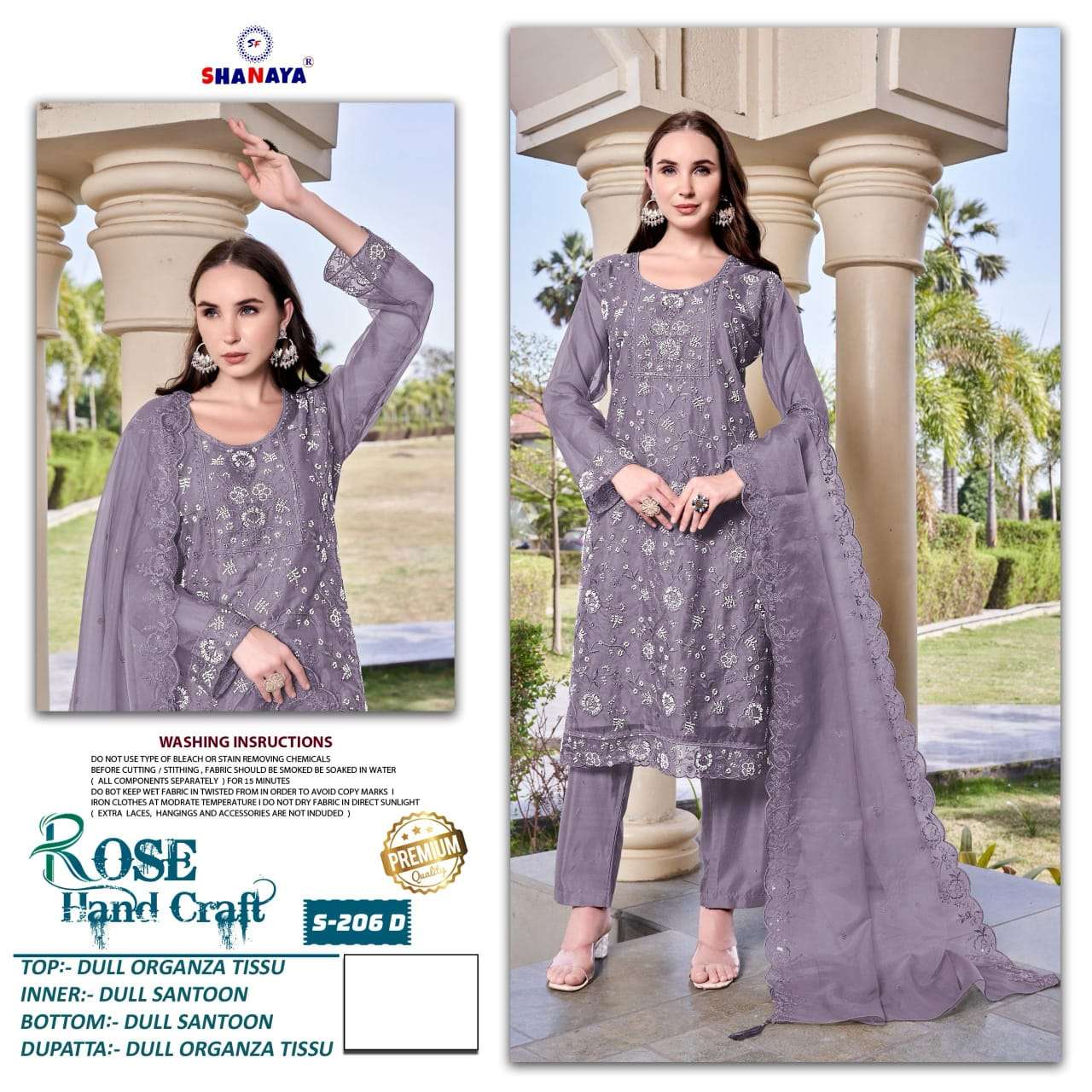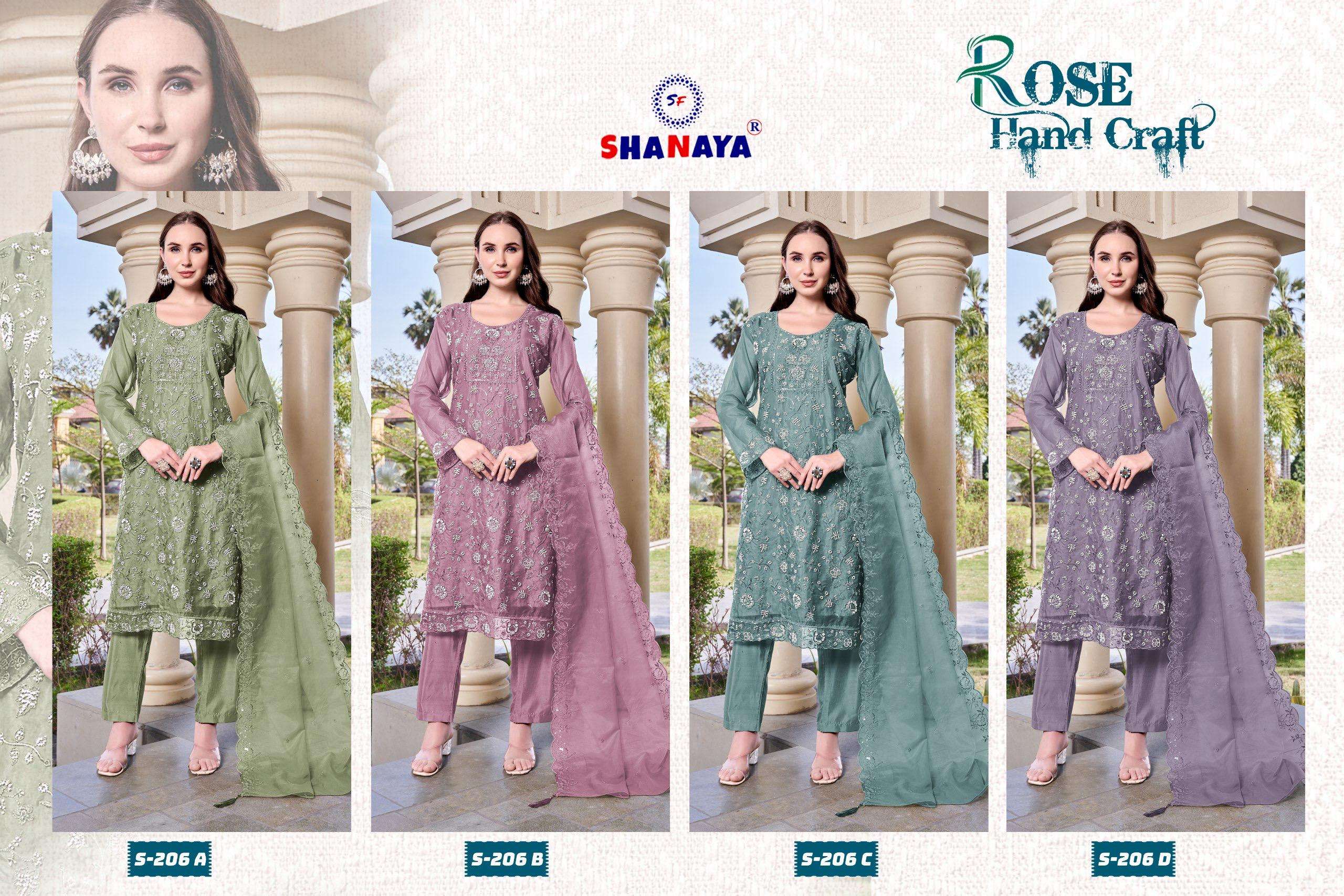 Buy Online ROSE HAND CRAFT D NO S 206 EDITION by SHANAYA fashion suit collection manufacturer surat 4 Pcs of Full Catalogue at Wholesale Price. Looking for ROSE HAND CRAFT D NO S 206 EDITION by SHANAYA fashion suit collection manufacturer surat Full Catalouge at Best Price? Buy Now ROSE HAND CRAFT D NO S 206 EDITION by SHANAYA fashion suit collection manufacturer surat at Wholesale Rate of Rs 5996 with Total 4 Pcs from authroized dealer and supplier of Shanaya Brand. Cost of Each piece is just only Rs 1499 which is very low and affordable price to resale the product in your retail store ,This is Surat based Wholesale Supplier & Dealer of Shanaya Brand. Click on Brand name to Know more about Shanaya Brand's products.Call or Whatsapp on 9898838984 for booking or enquiry