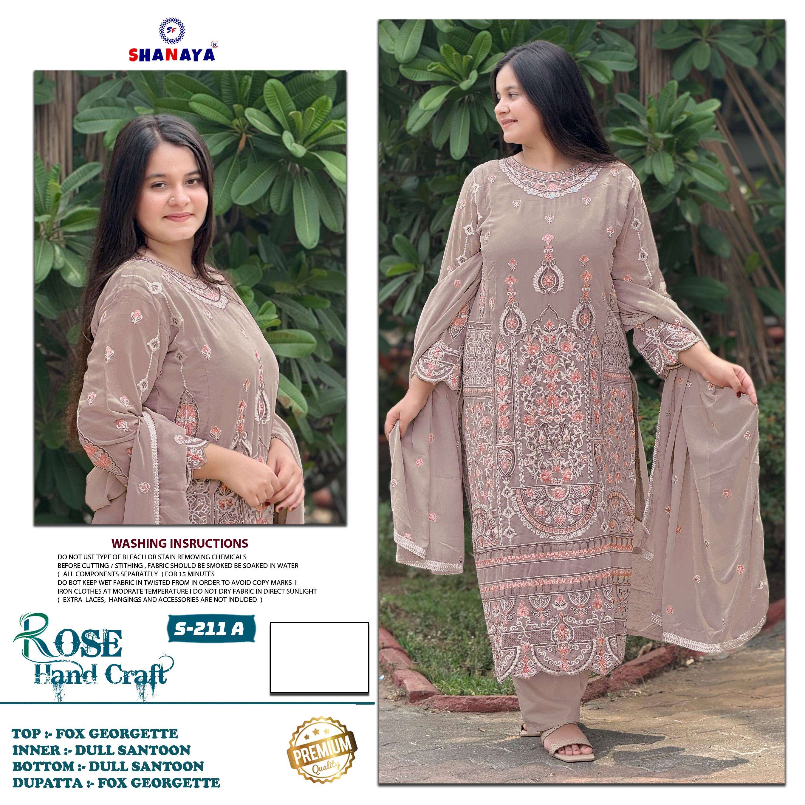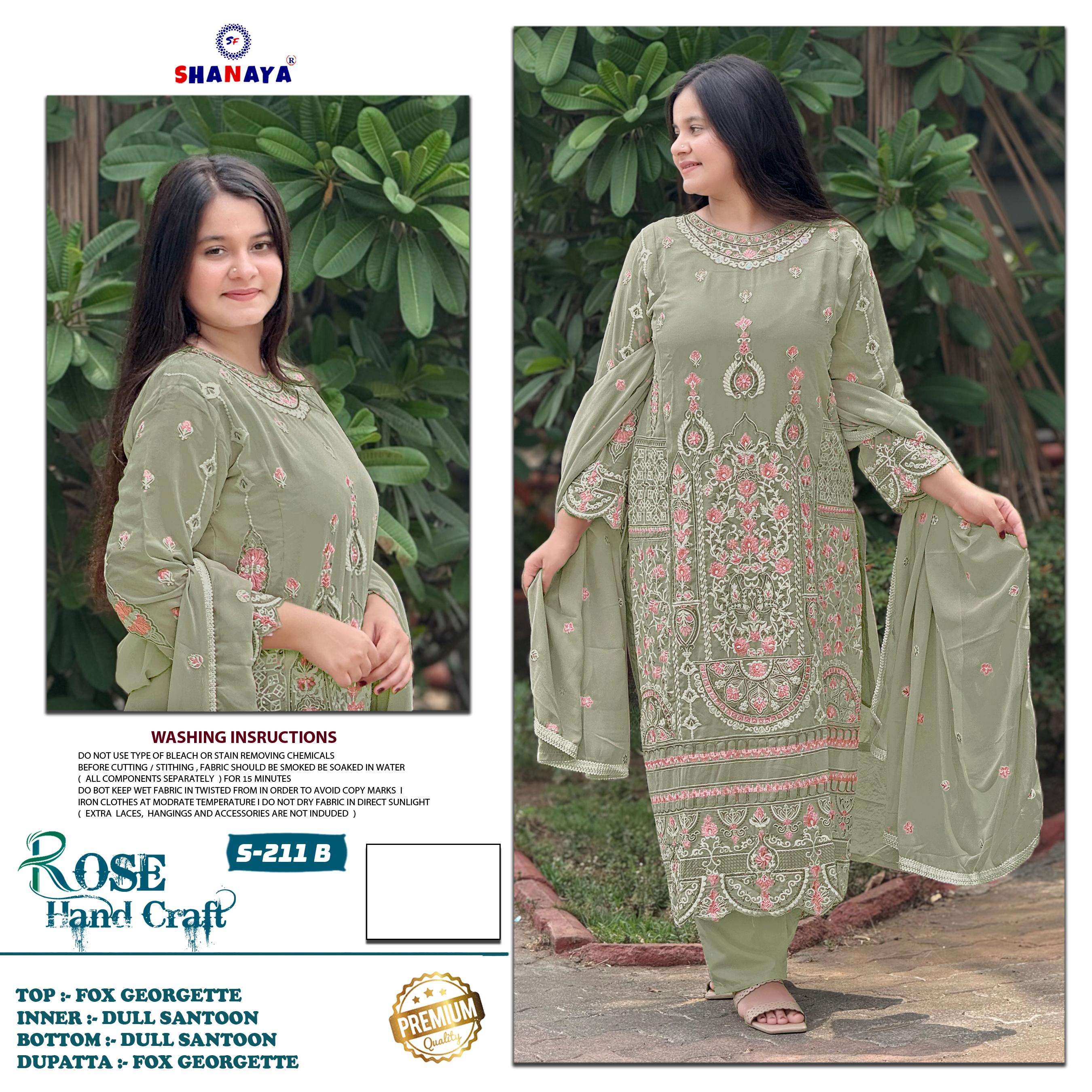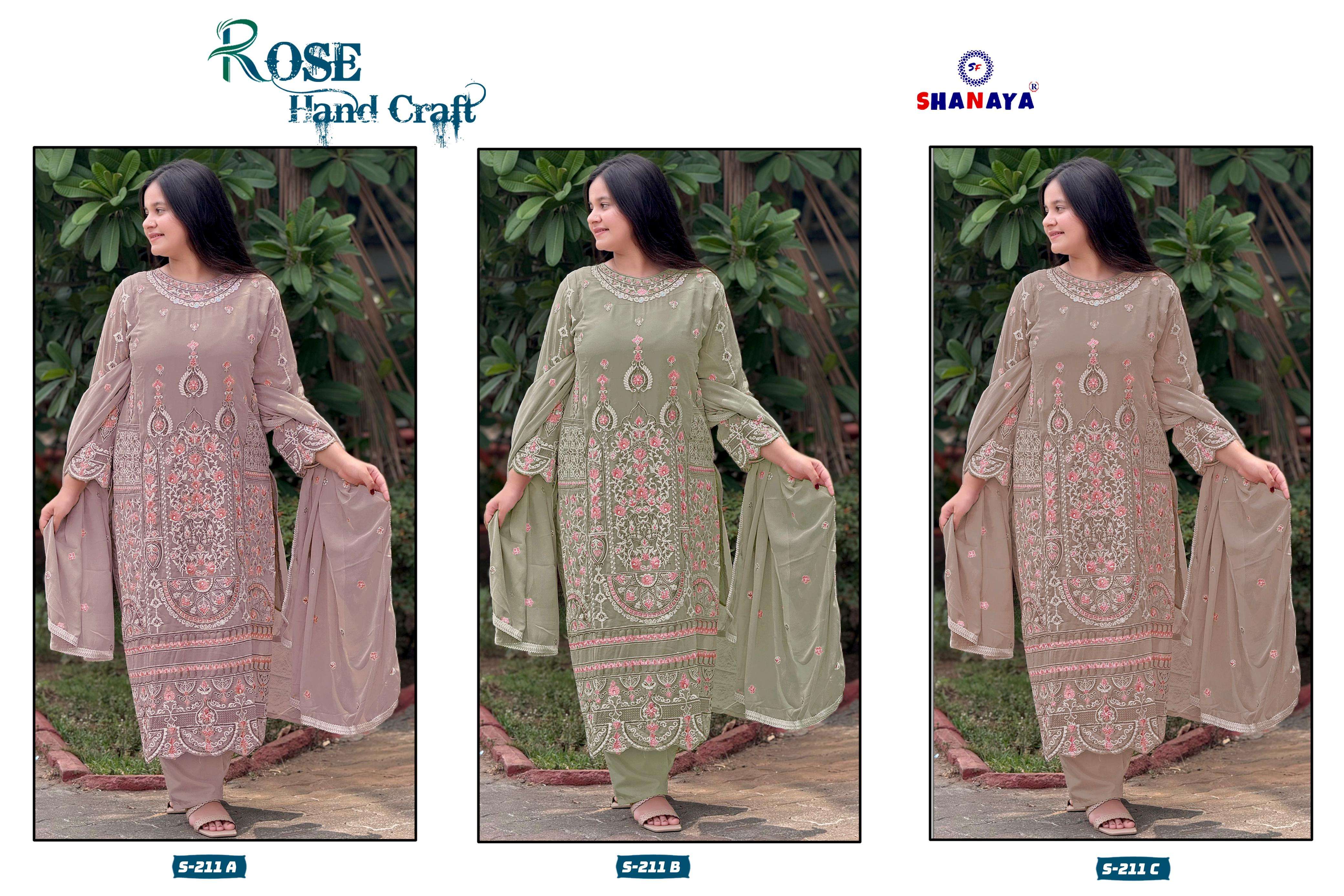 Buy Online ROSE HAND CRAFT D NO S 211 EDITION By SHANAYA fashion suit collection manufacturer Surat 3 Pcs of Full Catalogue at Wholesale Price. Looking for ROSE HAND CRAFT D NO S 211 EDITION By SHANAYA fashion suit collection manufacturer Surat Full Catalouge at Best Price? Buy Now ROSE HAND CRAFT D NO S 211 EDITION By SHANAYA fashion suit collection manufacturer Surat at Wholesale Rate of Rs 4287 with Total 3 Pcs from authroized dealer and supplier of Shanaya Brand. Cost of Each piece is just only Rs 1429 which is very low and affordable price to resale the product in your retail store ,This is Surat based Wholesale Supplier & Dealer of Shanaya Brand. Click on Brand name to Know more about Shanaya Brand's products.Call or Whatsapp on 9898838984 for booking or enquiry