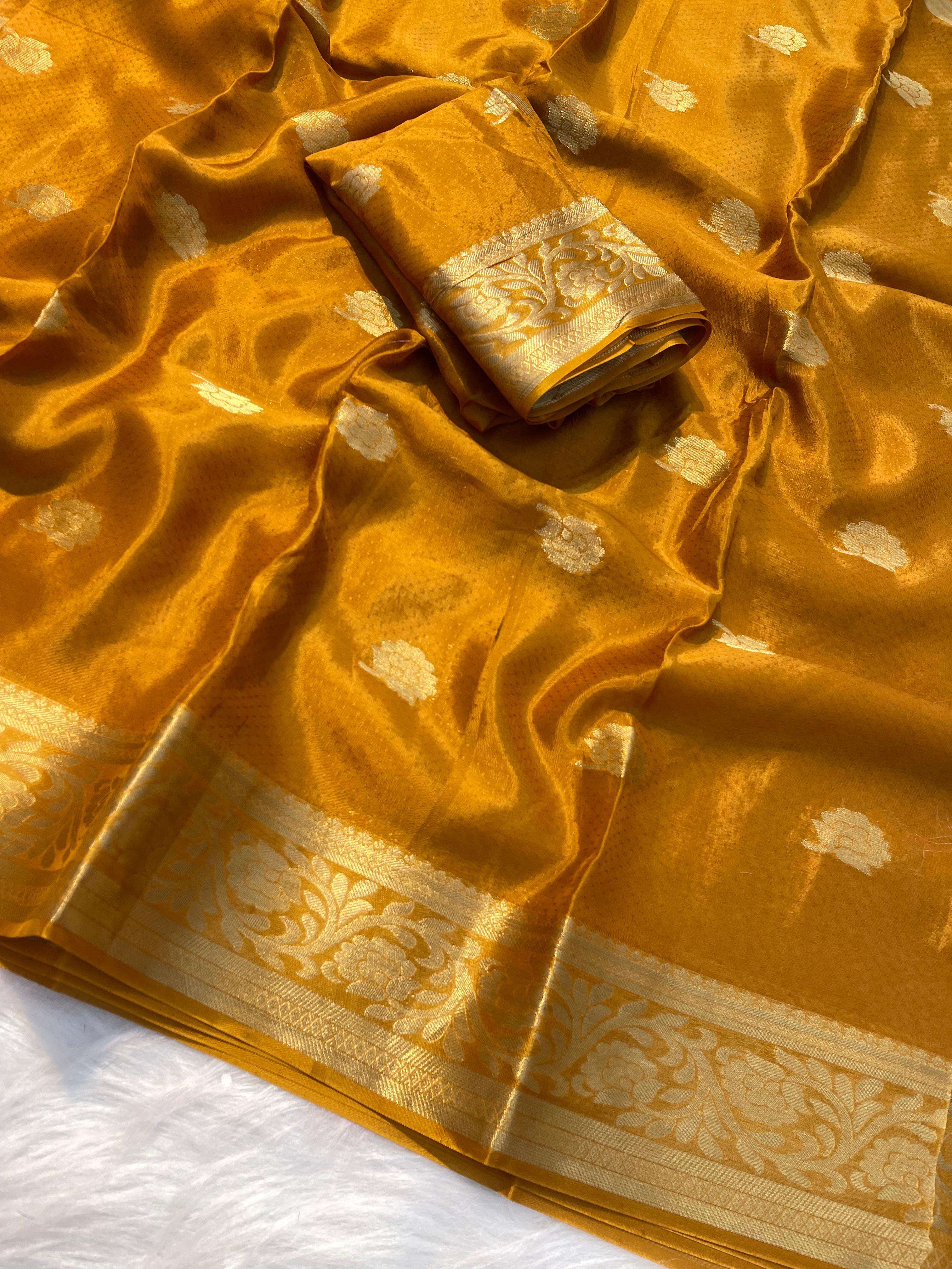 Pure viscose Mysore Crepe with jacquard Border with self small beauty with Rose butta