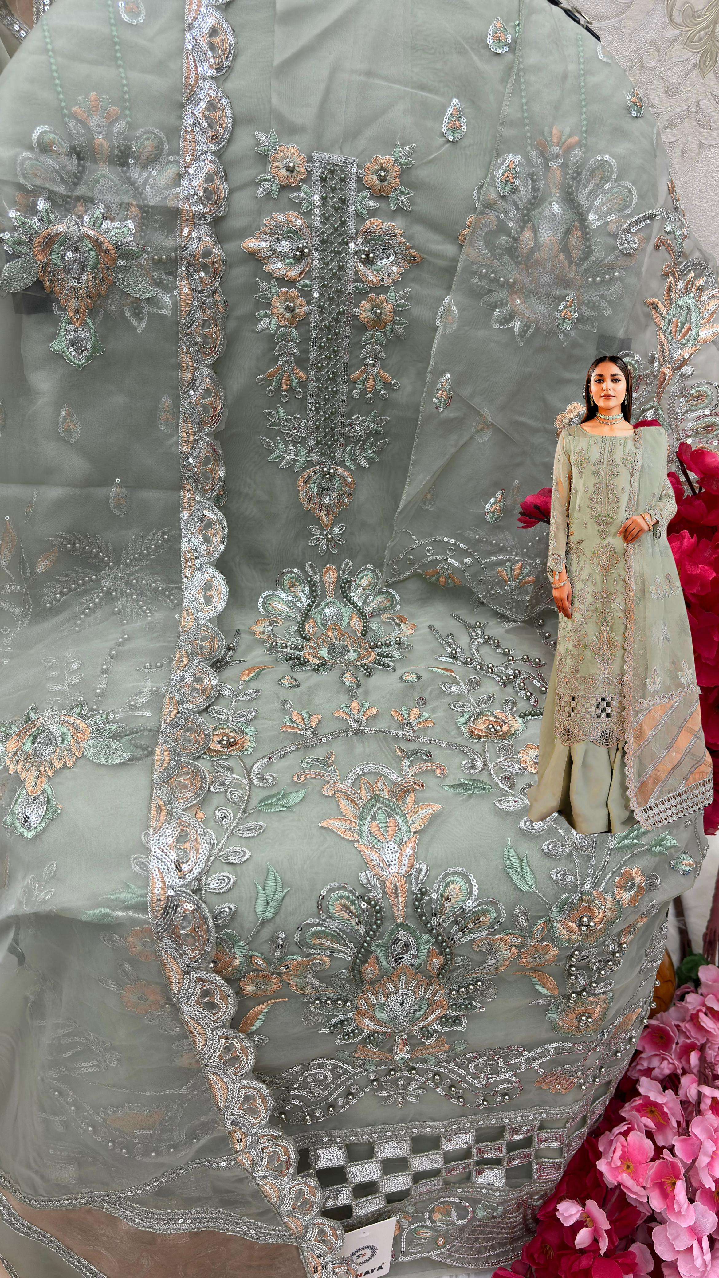 _*Top*_🔹 *HEAVY ORGANZA TISSU* EMBROIDERY SEQUENCE WORK & ADDITIONAL *MOTI MACHINE HANDWORK*