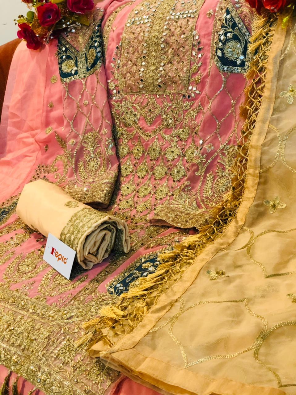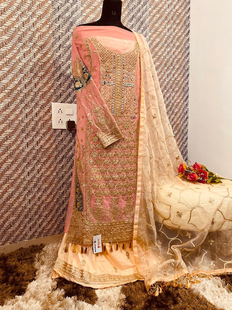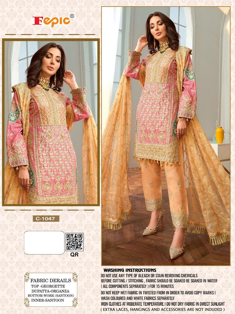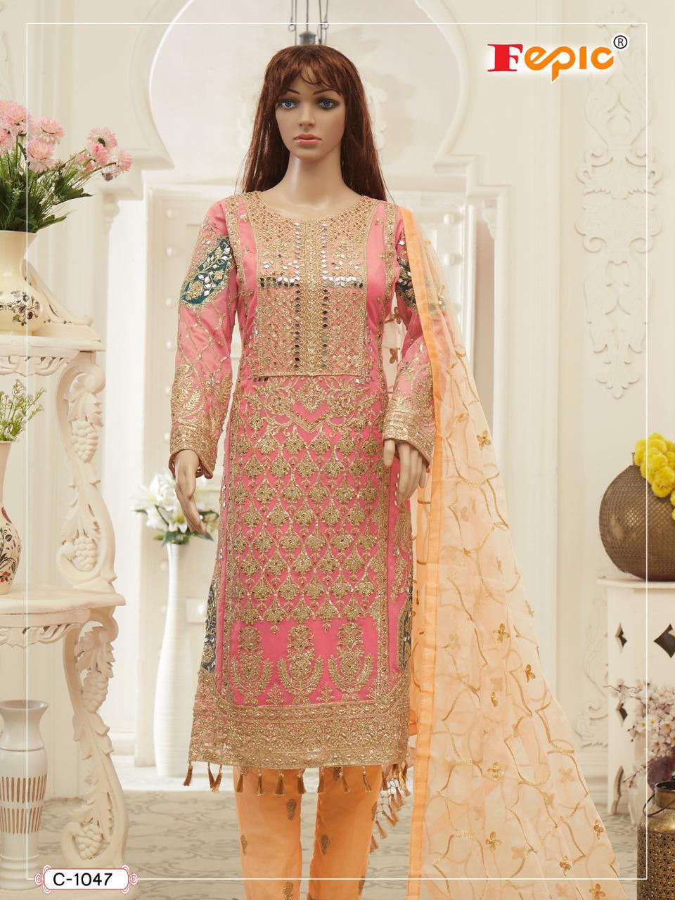 _*BRAND NAME_ *:- FEPIC _*CATALOUGE NAME_ *:- ROSEMEEN _*D NO_* :- C -1047 _*Top_* :- GEORGETTE EMBROIDERED WITH HEAVY HAND WORED _*Dupatta_ *:- ORGANZA EMBROIDERED WITH PEARLS _*Bottom_ *:- SANTOON EMBROIDERED _*INNER_ *:- SANTOON _*RATE_ *:- 1399/- 100+single |