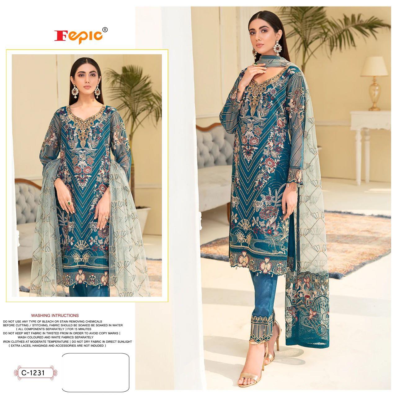 Buy Online Rosemeen C 1231 By Fepic Georgette Suit Pakistani Suits 5 Pcs of Full Catalogue at Wholesale Price. Looking for Rosemeen C 1231 By Fepic Georgette Suit Pakistani Suits Full Catalouge at Best Price? Buy Now Rosemeen C 1231 By Fepic Georgette Suit Pakistani Suits at Wholesale Rate of Rs 6745 with Total 5 Pcs from authroized dealer and supplier of FEPIC Brand. Cost of Each piece is just only Rs 1349 which is very low and affordable price to resale the product in your retail store ,This is Surat based Wholesale Supplier & Dealer of FEPIC Brand. Click on Brand name to Know more about FEPIC Brand's products.Call or Whatsapp on 9898838984 for booking or enquiry