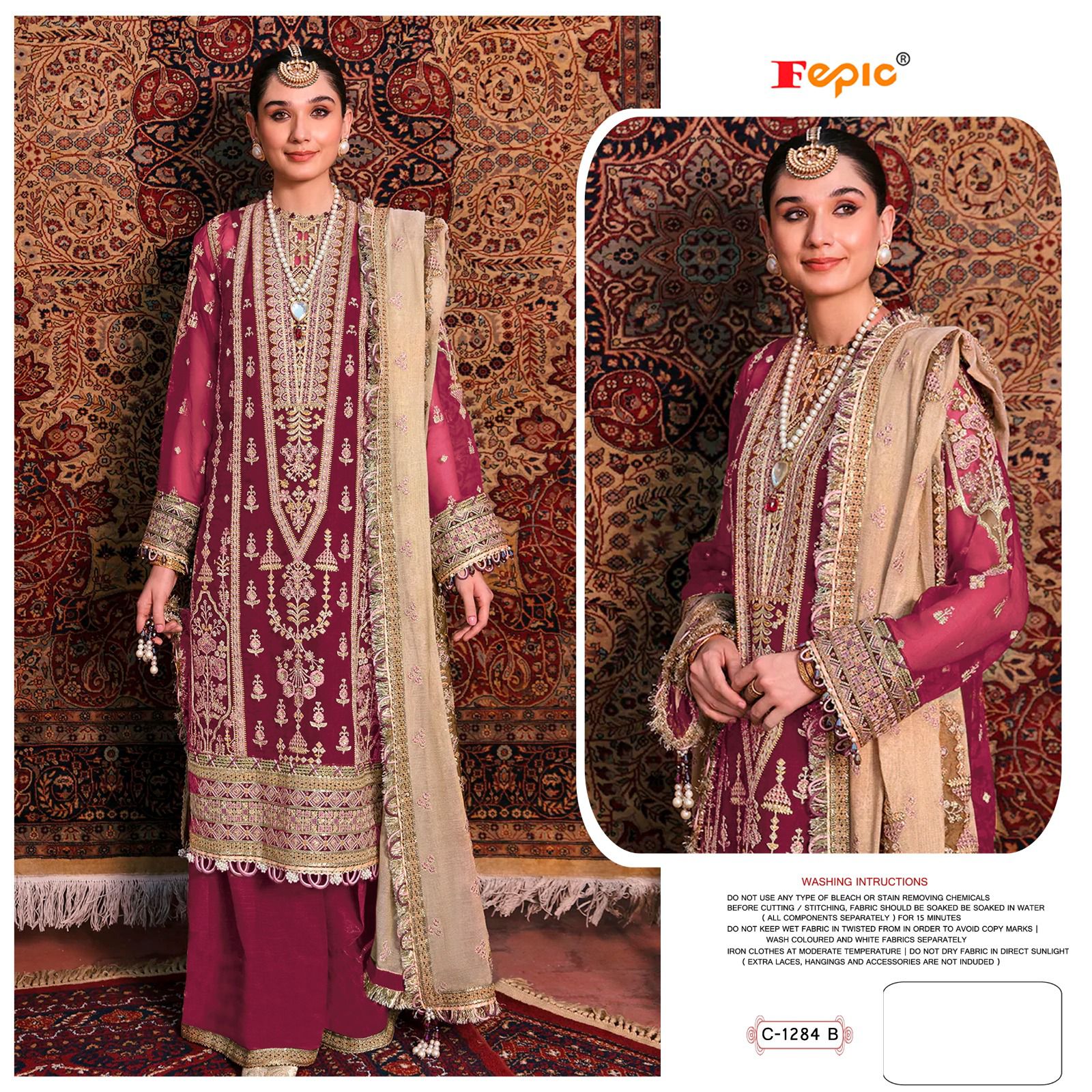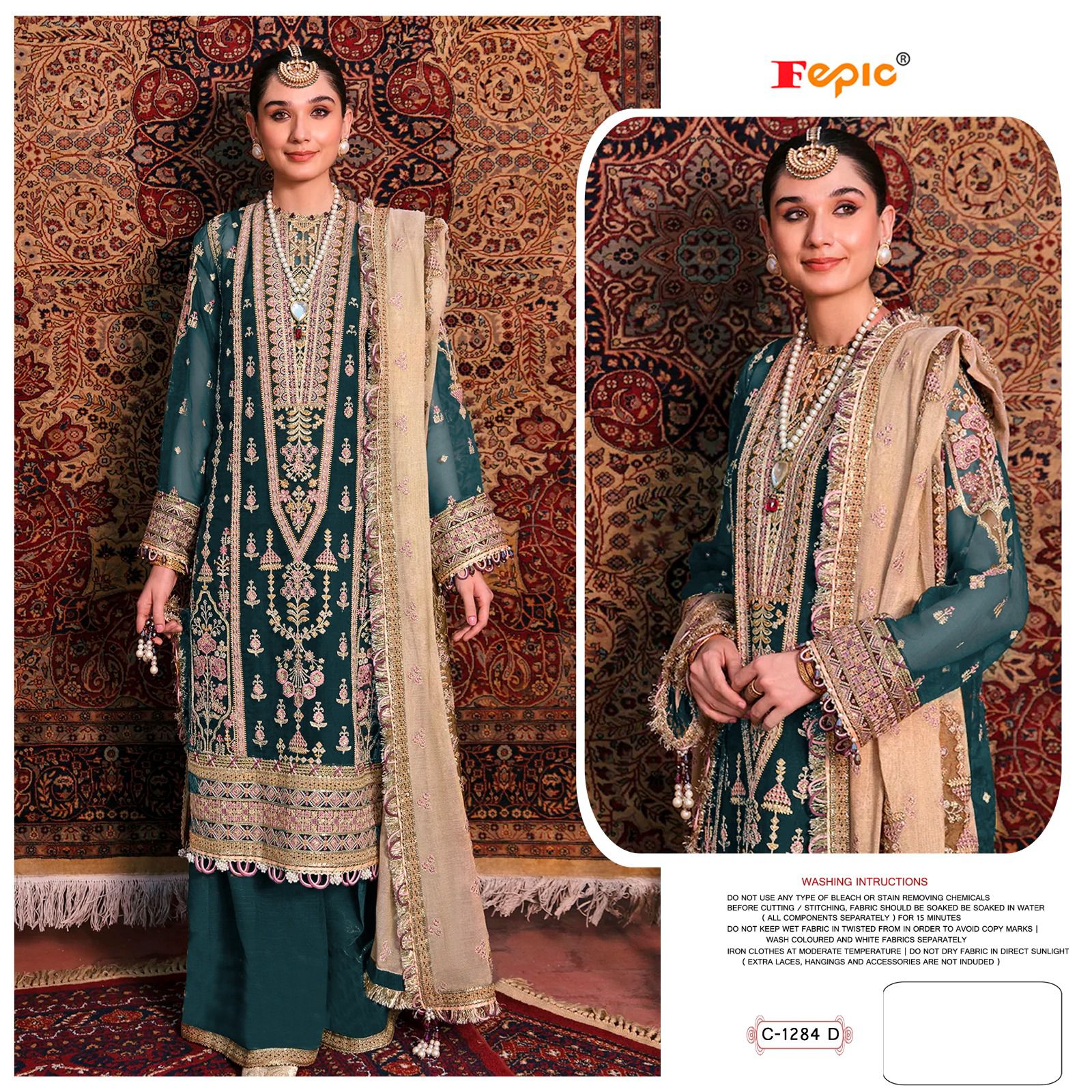 Buy Online Rosemeen C 1284 By Fepic Designer Organza Embroidered Pakistani Collection 4 Pcs of Full Catalogue at Wholesale Price. Looking for Rosemeen C 1284 By Fepic Designer Organza Embroidered Pakistani Collection Full Catalouge at Best Price? Buy Now Rosemeen C 1284 By Fepic Designer Organza Embroidered Pakistani Collection at Wholesale Rate of Rs 4884 with Total 4 Pcs from authroized dealer and supplier of FEPIC Brand. Cost of Each piece is just only Rs 1221 which is very low and affordable price to resale the product in your retail store ,This is Surat based Wholesale Supplier & Dealer of FEPIC Brand. Click on Brand name to Know more about FEPIC Brand's products.Call or Whatsapp on 9898838984 for booking or enquiry
