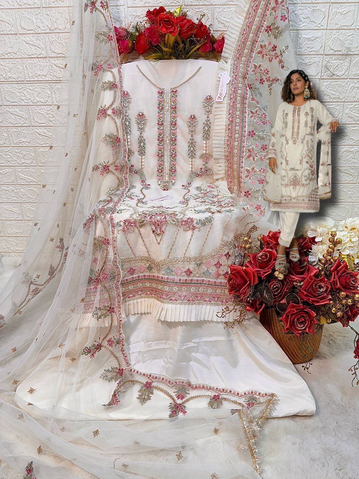 _*BRAND NAME*_:- FEPIC _*CATALOUGE NAME*_:- ROSEMEEN _*D NO*_:- C 1356 _*Top*_:- ORGANZA EMBROIDERED WITH HEAVY KHATLI WORKS _*Dupatta*_:- ORGANZA HEAVY EMBROIDERED _*Bottom*_:- SANTOON _*INNER*_:- SANTOON _*RATE*_:- 1331/- GST SHIP EXTRA 100+single |