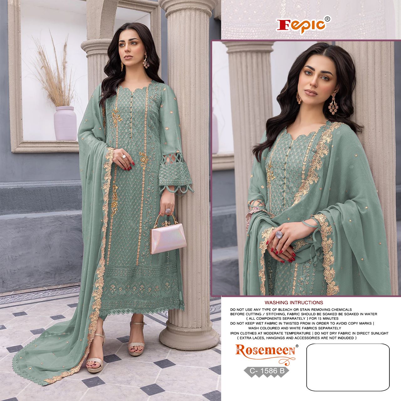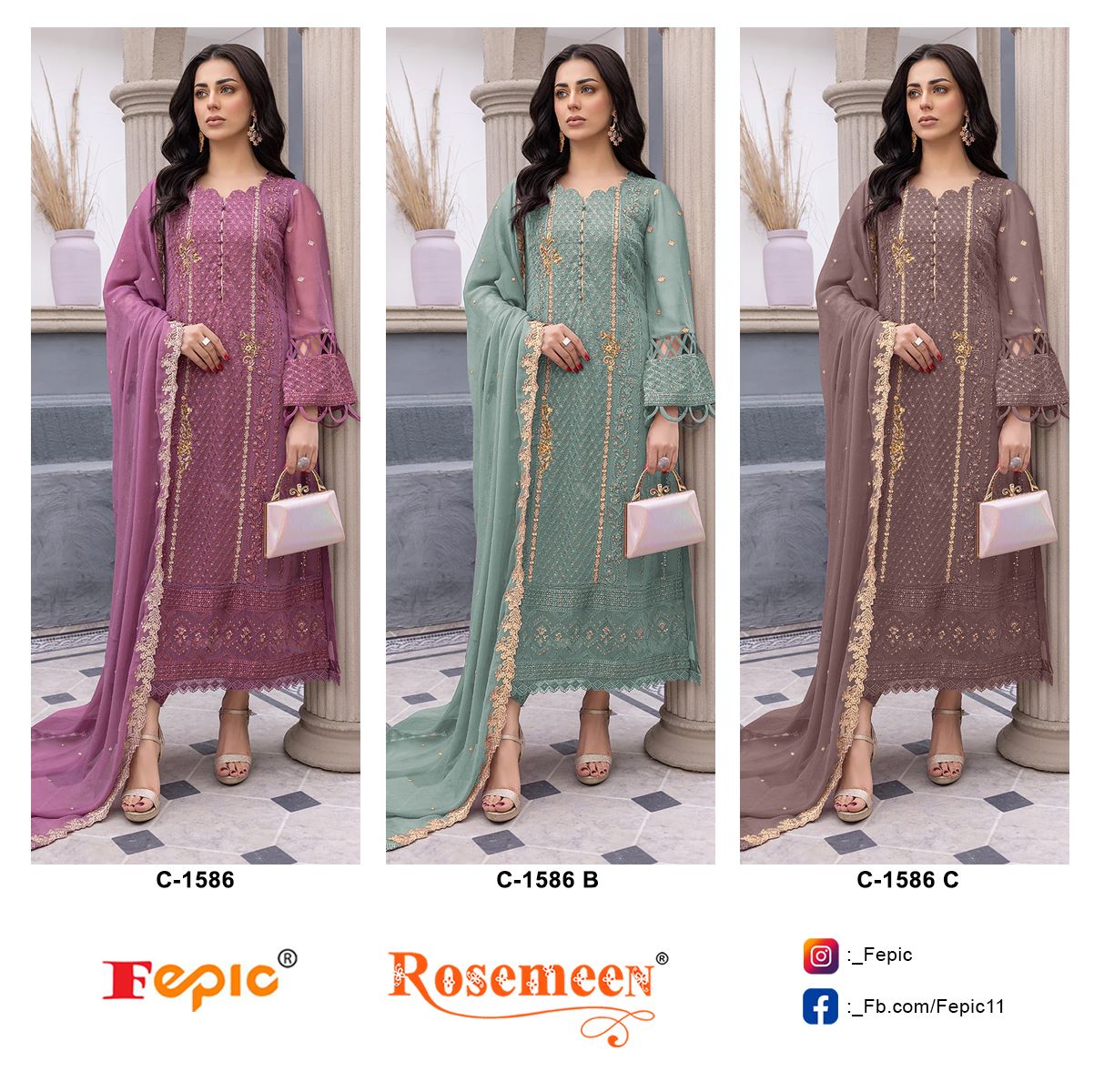 Buy Online Rosemeen C 1586 By Fepic Georgette Suit 3 Pcs of Full Catalogue at Wholesale Price. Looking for Rosemeen C 1586 By Fepic Georgette Suit Full Catalouge at Best Price? Buy Now Rosemeen C 1586 By Fepic Georgette Suit at Wholesale Rate of Rs 3597 with Total 3 Pcs from authroized dealer and supplier of FEPIC Brand. Cost of Each piece is just only Rs 1199 which is very low and affordable price to resale the product in your retail store ,This is Surat based Wholesale Supplier & Dealer of FEPIC Brand. Click on Brand name to Know more about FEPIC Brand's products.Call or Whatsapp on 9898838984 for booking or enquiry