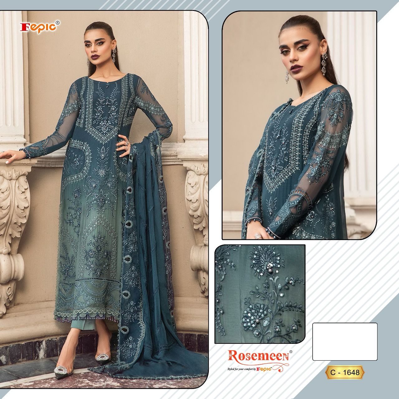 Buy Online Rosemeen C 1648 Fepic Organza Embroidered Work Suits 5 Pcs of Full Catalogue at Wholesale Price. Looking for Rosemeen C 1648 Fepic Organza Embroidered Work Suits Full Catalouge at Best Price? Buy Now Rosemeen C 1648 Fepic Organza Embroidered Work Suits at Wholesale Rate of Rs 6925 with Total 5 Pcs from authroized dealer and supplier of FEPIC Brand. Cost of Each piece is just only Rs 1385 which is very low and affordable price to resale the product in your retail store ,This is Surat based Wholesale Supplier & Dealer of FEPIC Brand. Click on Brand name to Know more about FEPIC Brand's products.Call or Whatsapp on 9898838984 for booking or enquiry