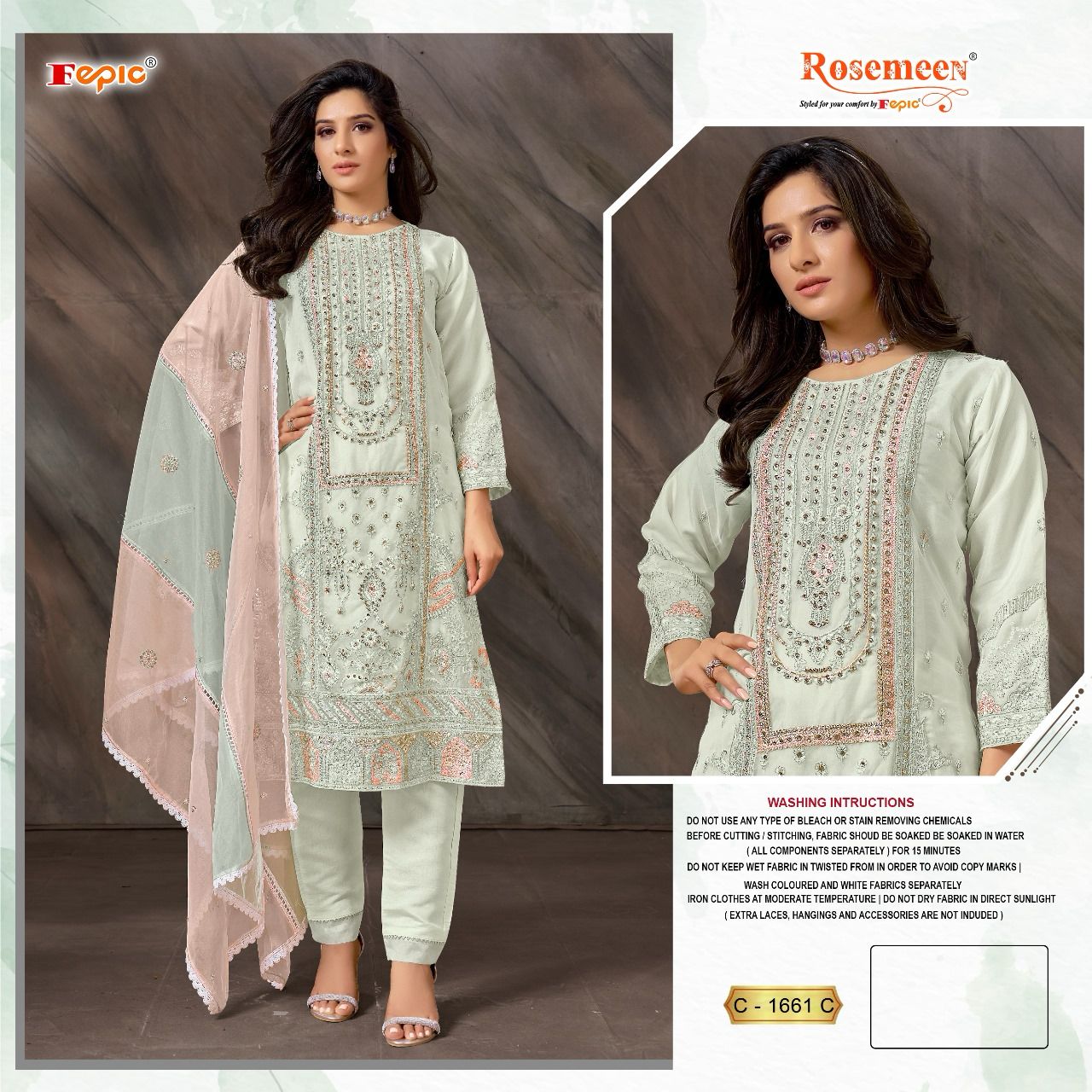 Rosemeen C 1661 By Fepic Organza Embroidered Collection Manufacturer Surat