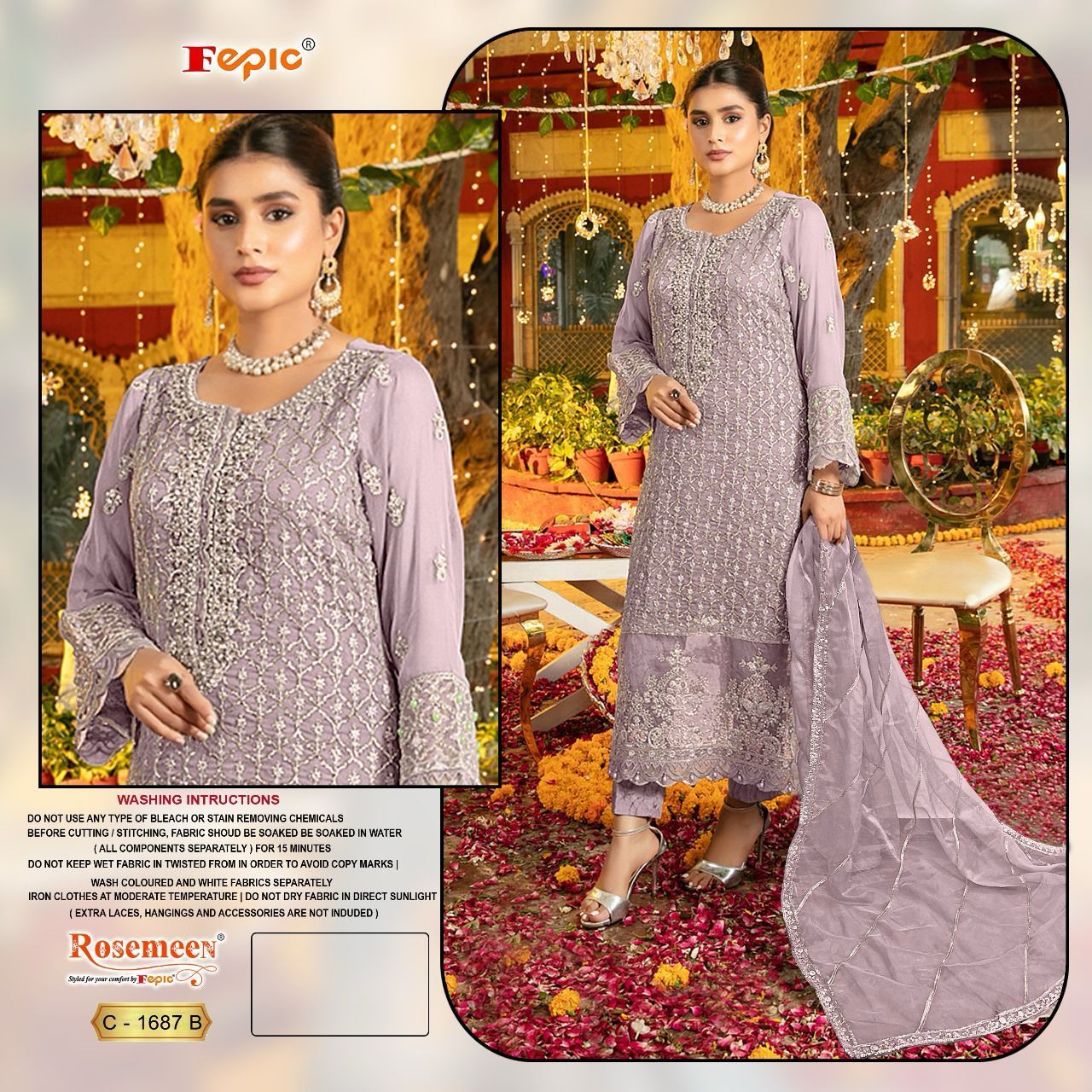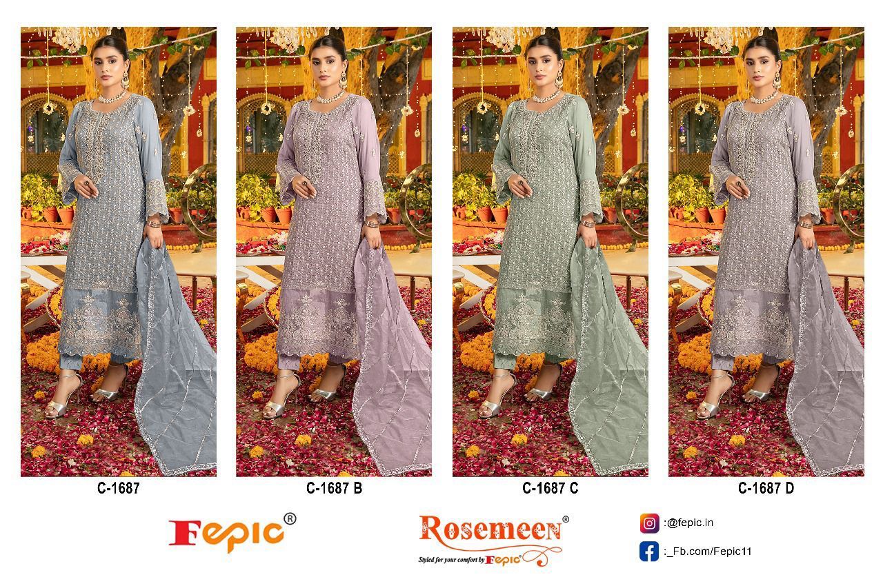 Buy Online Rosemeen C 1687 By Fepic Organza Embroidered Collection Manufacturer Surat 4 Pcs of Full Catalogue at Wholesale Price. Looking for Rosemeen C 1687 By Fepic Organza Embroidered Collection Manufacturer Surat Full Catalouge at Best Price? Buy Now Rosemeen C 1687 By Fepic Organza Embroidered Collection Manufacturer Surat at Wholesale Rate of Rs 5596 with Total 4 Pcs from authroized dealer and supplier of FEPIC Brand. Cost of Each piece is just only Rs 1399 which is very low and affordable price to resale the product in your retail store ,This is Surat based Wholesale Supplier & Dealer of FEPIC Brand. Click on Brand name to Know more about FEPIC Brand's products.Call or Whatsapp on 9898838984 for booking or enquiry