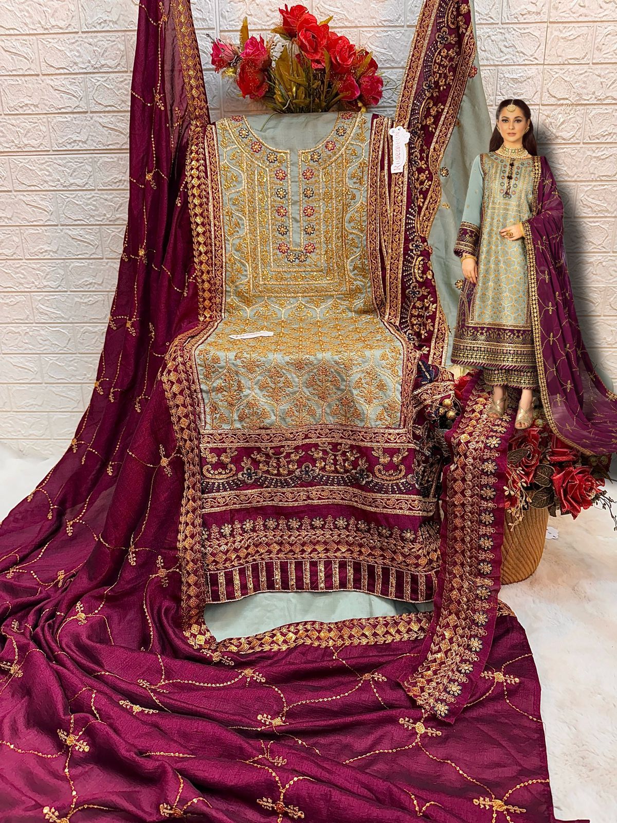 _*BRAND NAME*_:- FEPIC _*CATALOUGE NAME*_:- ROSEMEEN _*D NO*_:- C 1710 _*Top*_:- CHINON SILK EMBROIDERED WITH HEAVY HANDWORK _*Dupatta*_:- CHINON HEAVY EMBROIDERED _*Bottom*_:- SANTOON WITH EMBROIDERED PAYAL BUNCHES _*INNER*_:- SANTOON _*RATE*_:- 1475/- GST SHIP EXTRA 100+Singles |