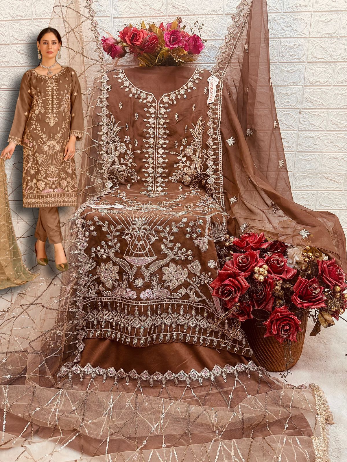 _*BRAND NAME*_:- FEPIC _*CATALOUGE NAME*_:- ROSEMEEN _*D NO*_:- C 1724 _*Top*_:- ORGANZA EMBROIDERED WITH HEAVY HANDWORK _*Dupatta*_:- EMBROIDERED NET _*Bottom*_:- SANTOON _*INNER*_:- SANTOON _*RATE*_:- 1221/- GST SHIP EXTRA 100+Singles |