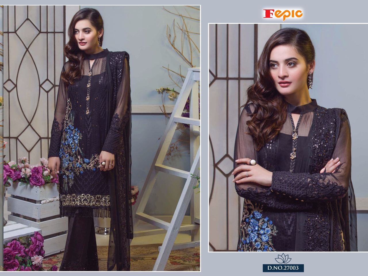 Buy Online Rosemeen Carvan By Fepic 27001 Series Georgette Pakistani Salwar Kameez Catlog Wholesale Dealer And Supplier Surat 5 Pcs of Full Catalogue at Wholesale Price. Looking for Rosemeen Carvan By Fepic 27001 Series Georgette Pakistani Salwar Kameez Catlog Wholesale Dealer And Supplier Surat Full Catalouge at Best Price? Buy Now Rosemeen Carvan By Fepic 27001 Series Georgette Pakistani Salwar Kameez Catlog Wholesale Dealer And Supplier Surat at Wholesale Rate of Rs 5995 with Total 5 Pcs from authroized dealer and supplier of FEPIC Brand. Cost of Each piece is just only Rs 1199 which is very low and affordable price to resale the product in your retail store ,This is Surat based Wholesale Supplier & Dealer of FEPIC Brand. Click on Brand name to Know more about FEPIC Brand's products.Call or Whatsapp on 9898838984 for booking or enquiry