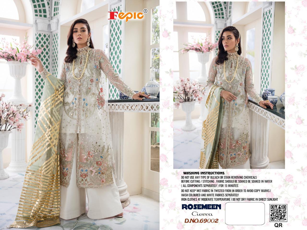 Buy Online Rosemeen Cierra By Fepic Pakistani Suits Wholesale Supplier And Dealer Surat 6 Pcs of Full Catalogue at Wholesale Price. Looking for Rosemeen Cierra By Fepic Pakistani Suits Wholesale Supplier And Dealer Surat Full Catalouge at Best Price? Buy Now Rosemeen Cierra By Fepic Pakistani Suits Wholesale Supplier And Dealer Surat at Wholesale Rate of Rs 7194 with Total 6 Pcs from authroized dealer and supplier of FEPIC Brand. Cost of Each piece is just only Rs 1199 which is very low and affordable price to resale the product in your retail store ,This is Surat based Wholesale Supplier & Dealer of FEPIC Brand. Click on Brand name to Know more about FEPIC Brand's products.Call or Whatsapp on 9898838984 for booking or enquiry