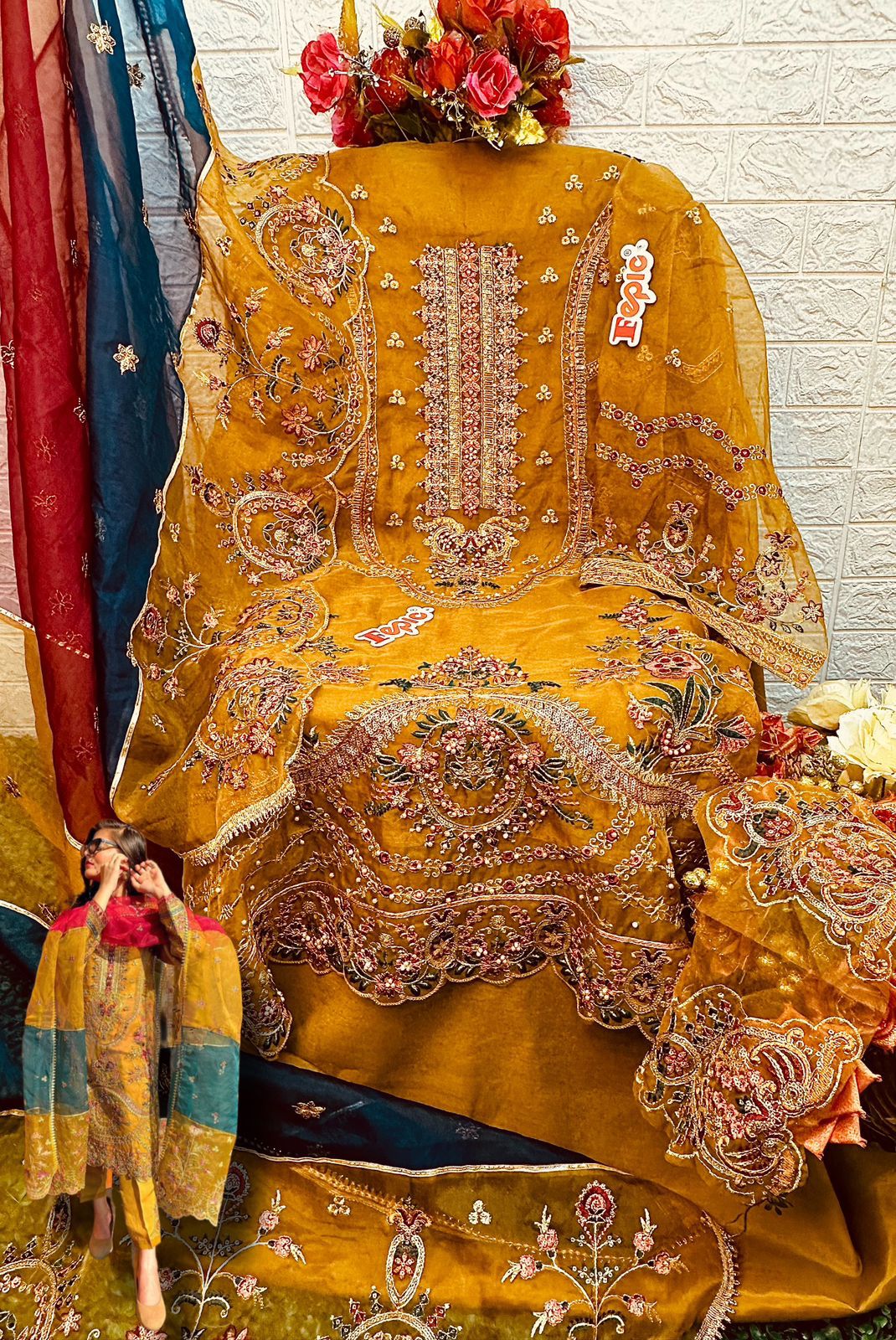 BRAND NAME:- FEPIC CATALOUGE NAME:- ROSEMEEN D NO:- D 5246 Top:- ORGANZA EMBROIDERED WITH PEARL WORK Dupatta:- ORGANZA EMBROIDERED FANCY CUTPASTE Bottom:- SANTOON WITH EMBROIDERED PAYAL BUNCHES INNER:- SANTOON _* RATE*_:-1281/- 100+ SINGLE |