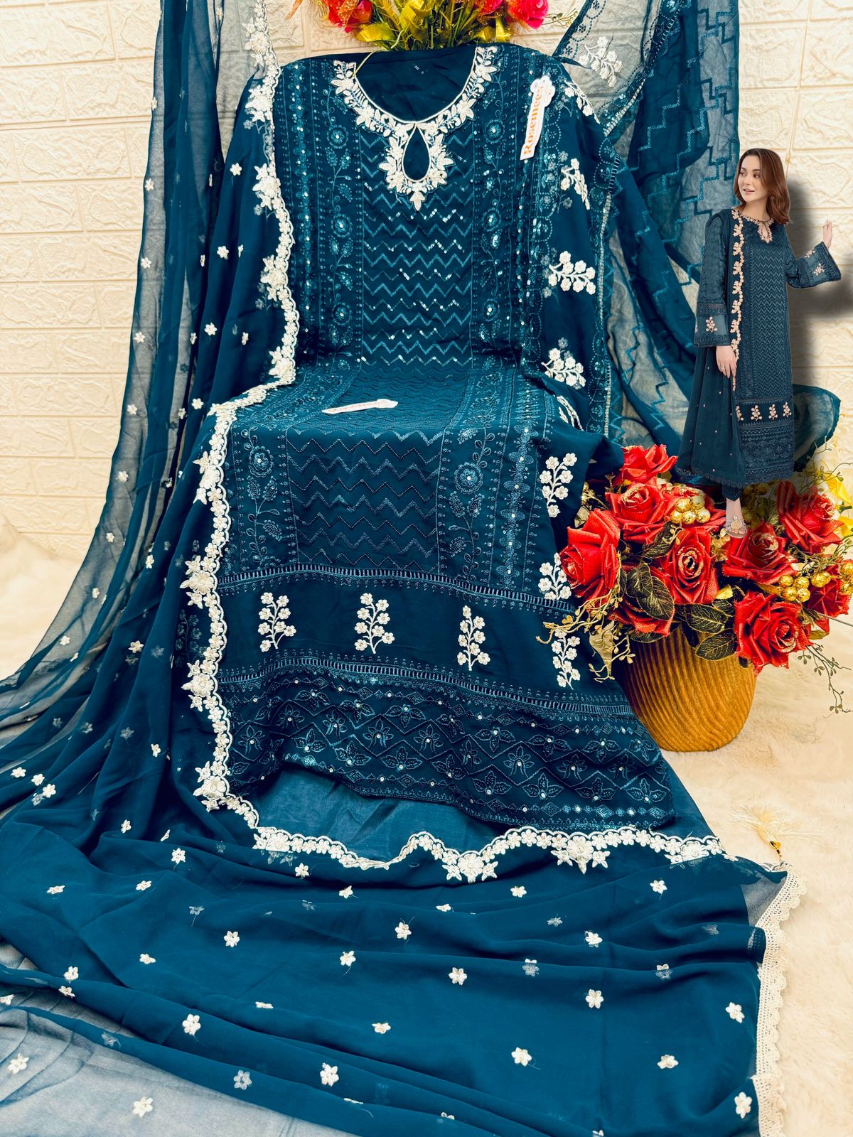 _*BRAND NAME*_:- FEPIC _*CATALOUGE NAME*_:- ROSEMEEN _*D NO*_:- D 5426 _*Top*_:- GEORGETTE EMBROIDERED _*Dupatta*_:- GEORGETTE EMBROIDERED _*Bottom*_:- SANTOON _*INNER*_:- SANTOON _*RATE*_:- 1099/- GST SHIP EXTRa 100+Singles |