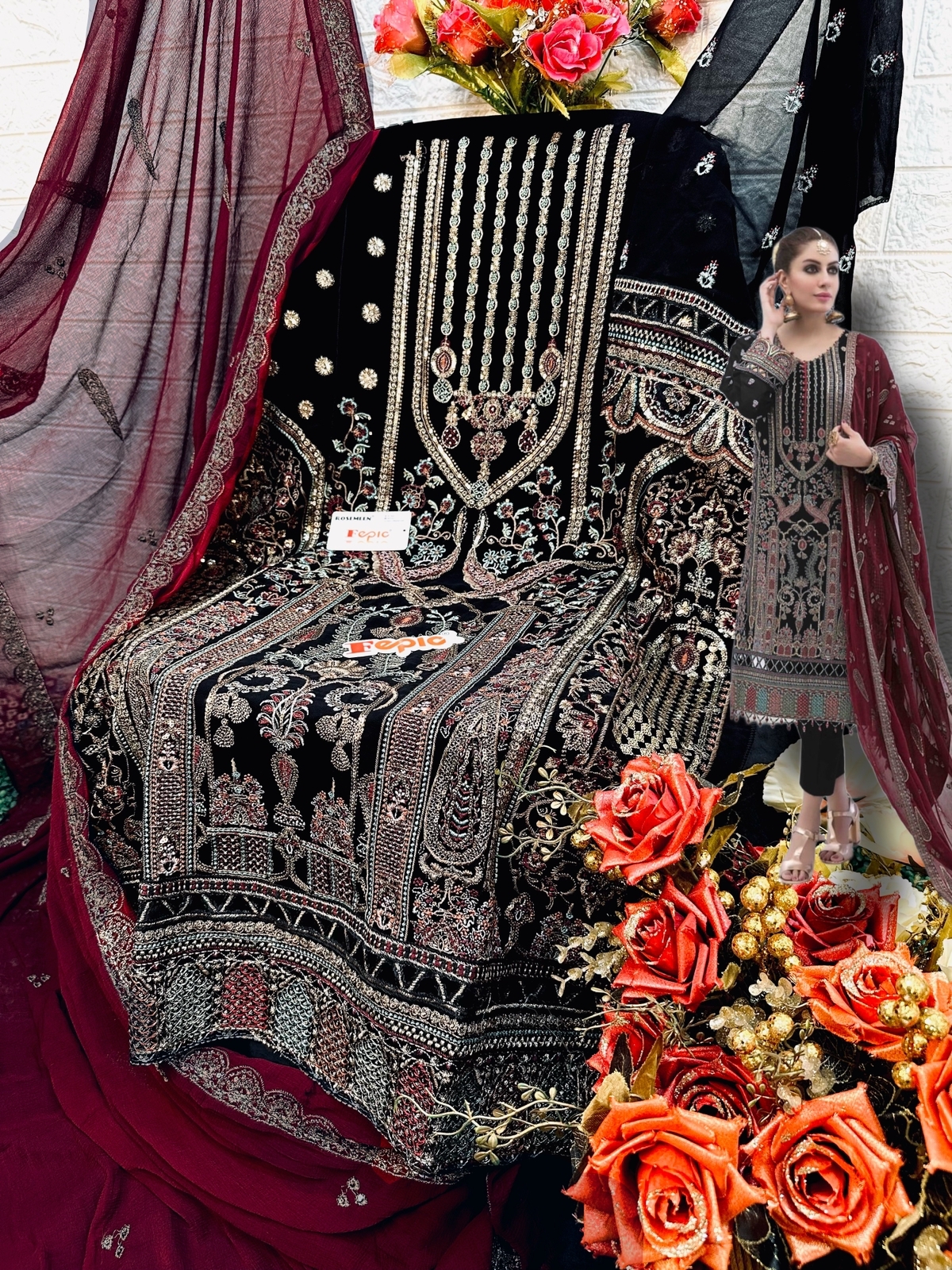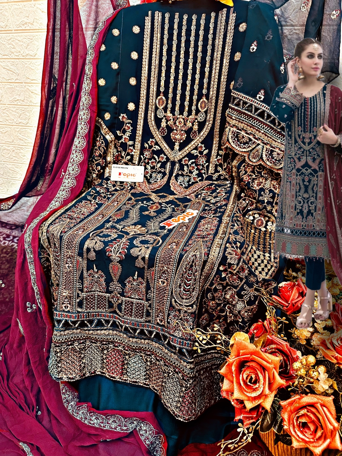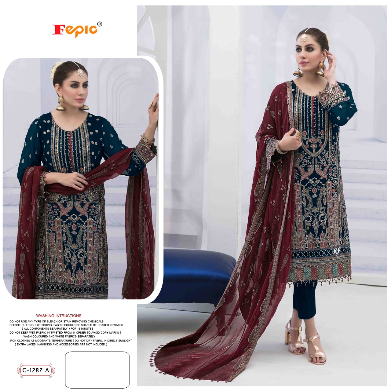 Buy Online Rosemeen D No 1287 By Fepic Georgette Pakistani Suit Single Available Wholesaler Surat Gujarat 3 Pcs of Full Catalogue at Wholesale Price. Looking for Rosemeen D No 1287 By Fepic Georgette Pakistani Suit Single Available Wholesaler Surat Gujarat Full Catalouge at Best Price? Buy Now Rosemeen D No 1287 By Fepic Georgette Pakistani Suit Single Available Wholesaler Surat Gujarat at Wholesale Rate of Rs 3843 with Total 3 Pcs from authroized dealer and supplier of FEPIC Brand. Cost of Each piece is just only Rs 1281 which is very low and affordable price to resale the product in your retail store ,This is Surat based Wholesale Supplier & Dealer of FEPIC Brand. Click on Brand name to Know more about FEPIC Brand's products.Call or Whatsapp on 9898838984 for booking or enquiry
