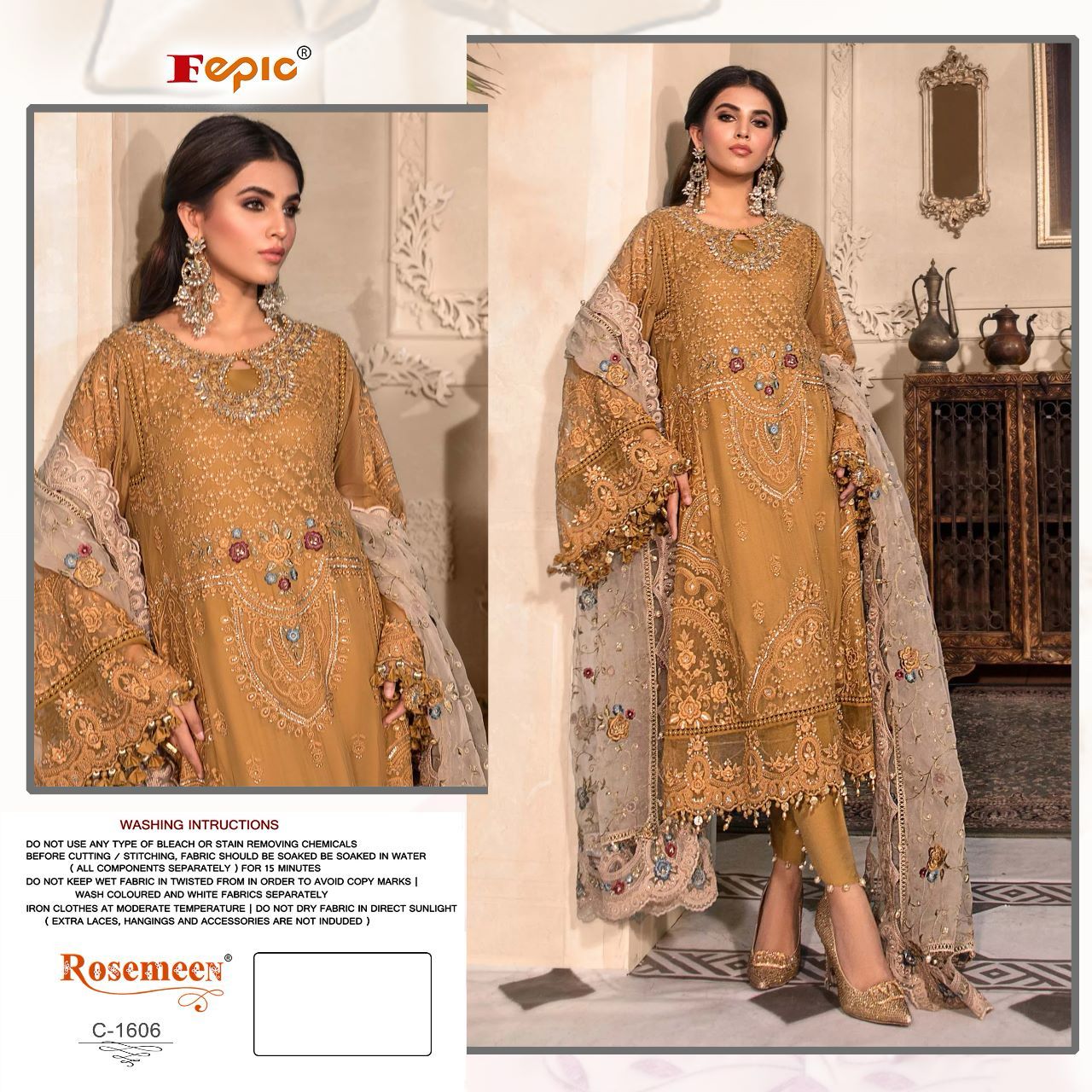 Buy Online Rosemeen D No 1606 Fepic Organza Pakistani Concept 5 Pcs of Full Catalogue at Wholesale Price. Looking for Rosemeen D No 1606 Fepic Organza Pakistani Concept Full Catalouge at Best Price? Buy Now Rosemeen D No 1606 Fepic Organza Pakistani Concept at Wholesale Rate of Rs 6405 with Total 5 Pcs from authroized dealer and supplier of FEPIC Brand. Cost of Each piece is just only Rs 1281 which is very low and affordable price to resale the product in your retail store ,This is Surat based Wholesale Supplier & Dealer of FEPIC Brand. Click on Brand name to Know more about FEPIC Brand's products.Call or Whatsapp on 9898838984 for booking or enquiry