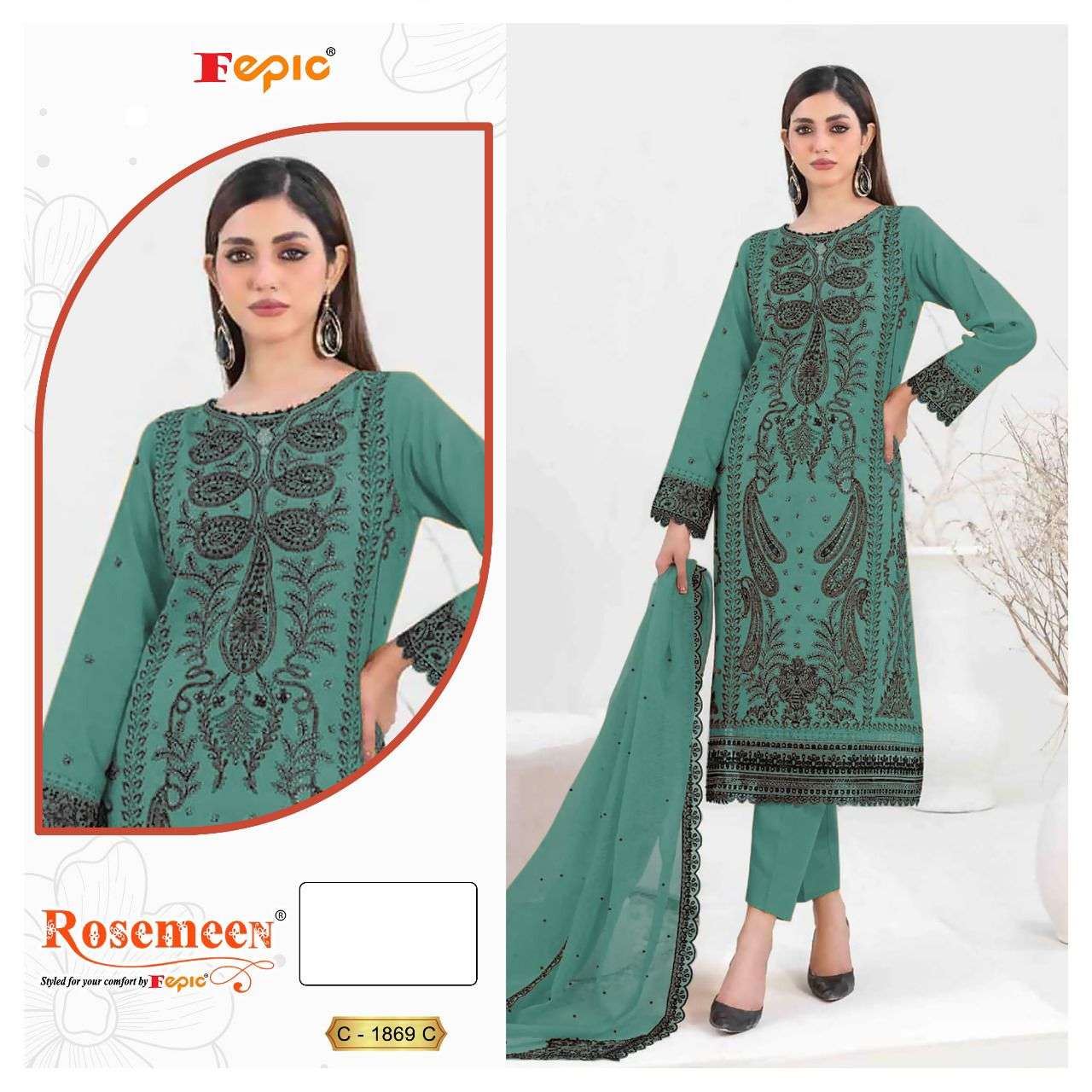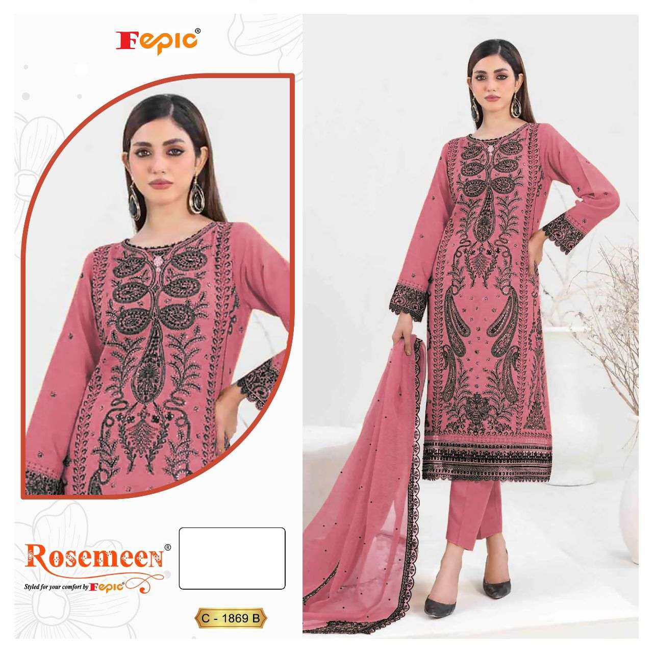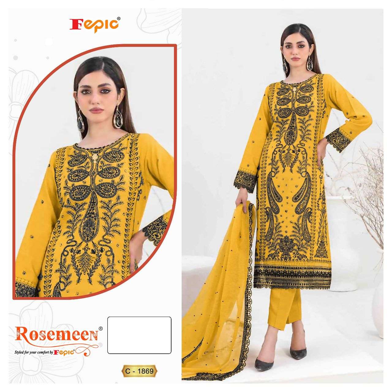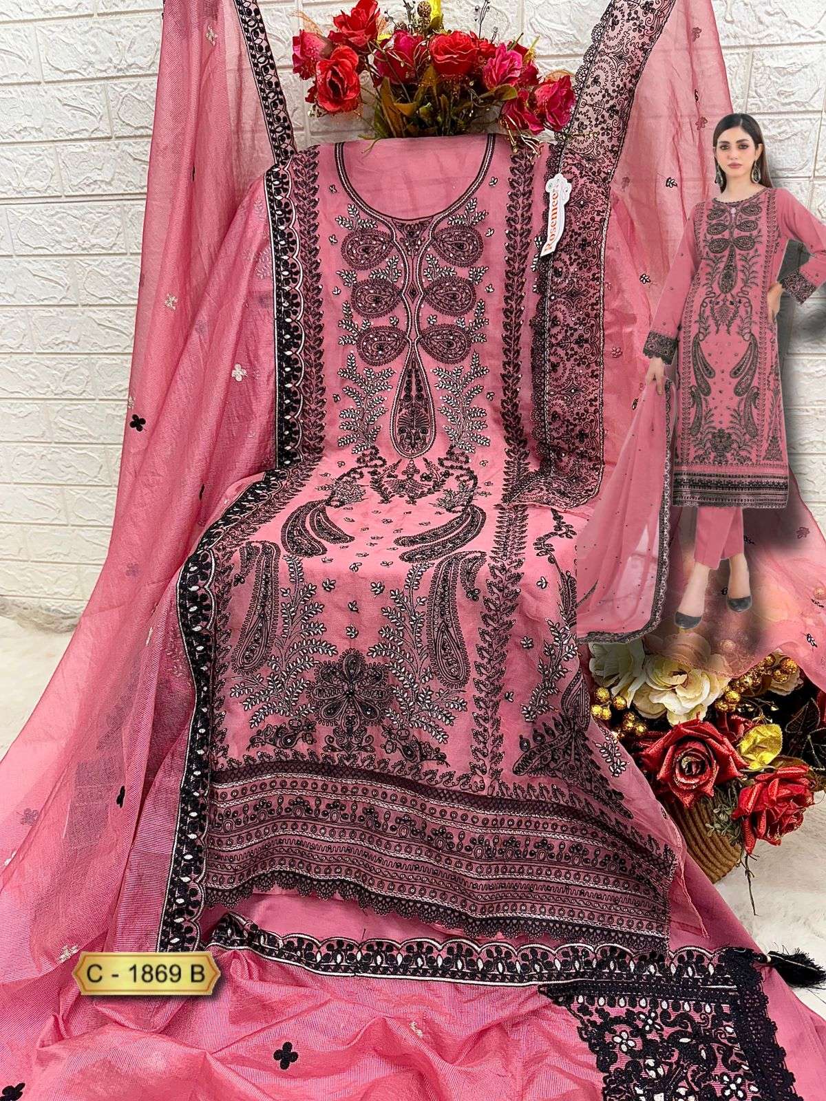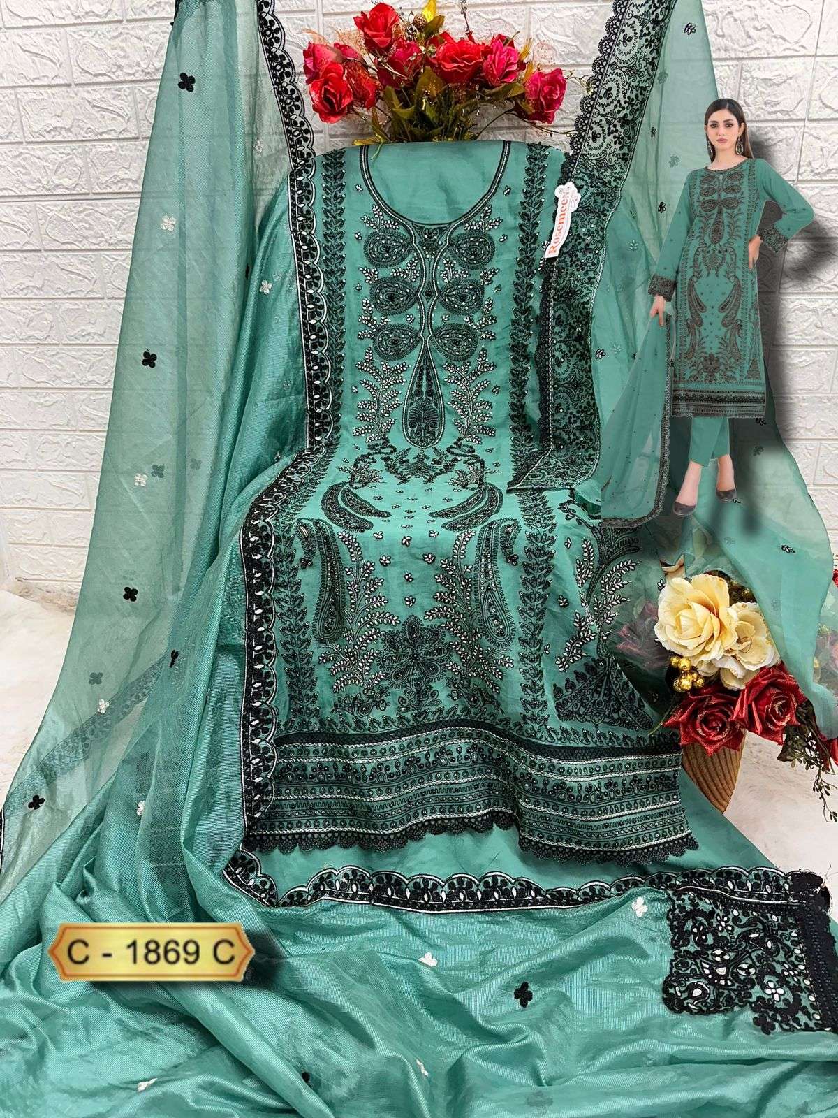 Buy Online ROSEMEEN D NO 1869 by FEPIC ORGANZA suit collection manufacturer Surat 3 Pcs of Full Catalogue at Wholesale Price. Looking for ROSEMEEN D NO 1869 by FEPIC ORGANZA suit collection manufacturer Surat Full Catalouge at Best Price? Buy Now ROSEMEEN D NO 1869 by FEPIC ORGANZA suit collection manufacturer Surat at Wholesale Rate of Rs 4143 with Total 3 Pcs from authroized dealer and supplier of FEPIC Brand. Cost of Each piece is just only Rs 1381 which is very low and affordable price to resale the product in your retail store ,This is Surat based Wholesale Supplier & Dealer of FEPIC Brand. Click on Brand name to Know more about FEPIC Brand's products.Call or Whatsapp on 9898838984 for booking or enquiry