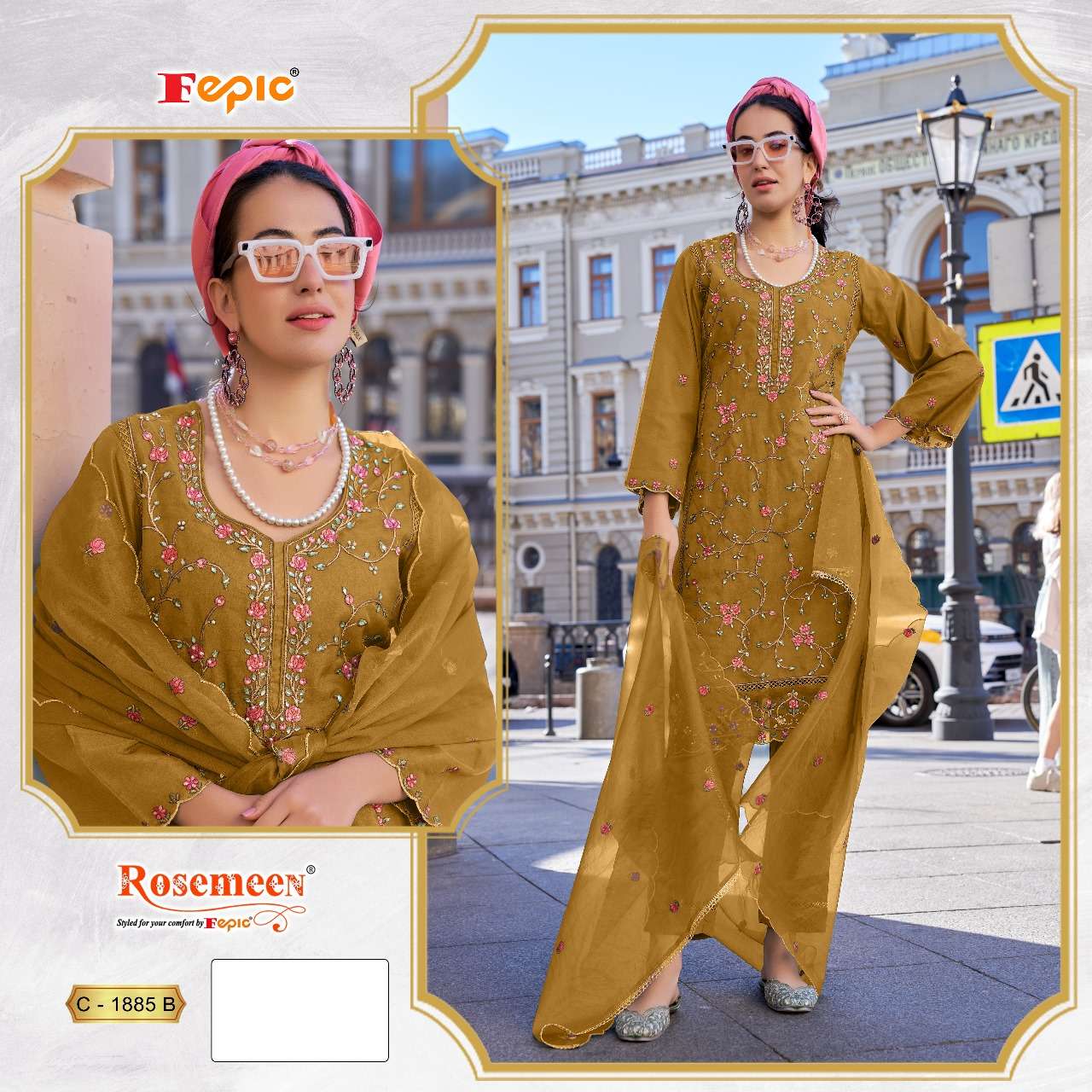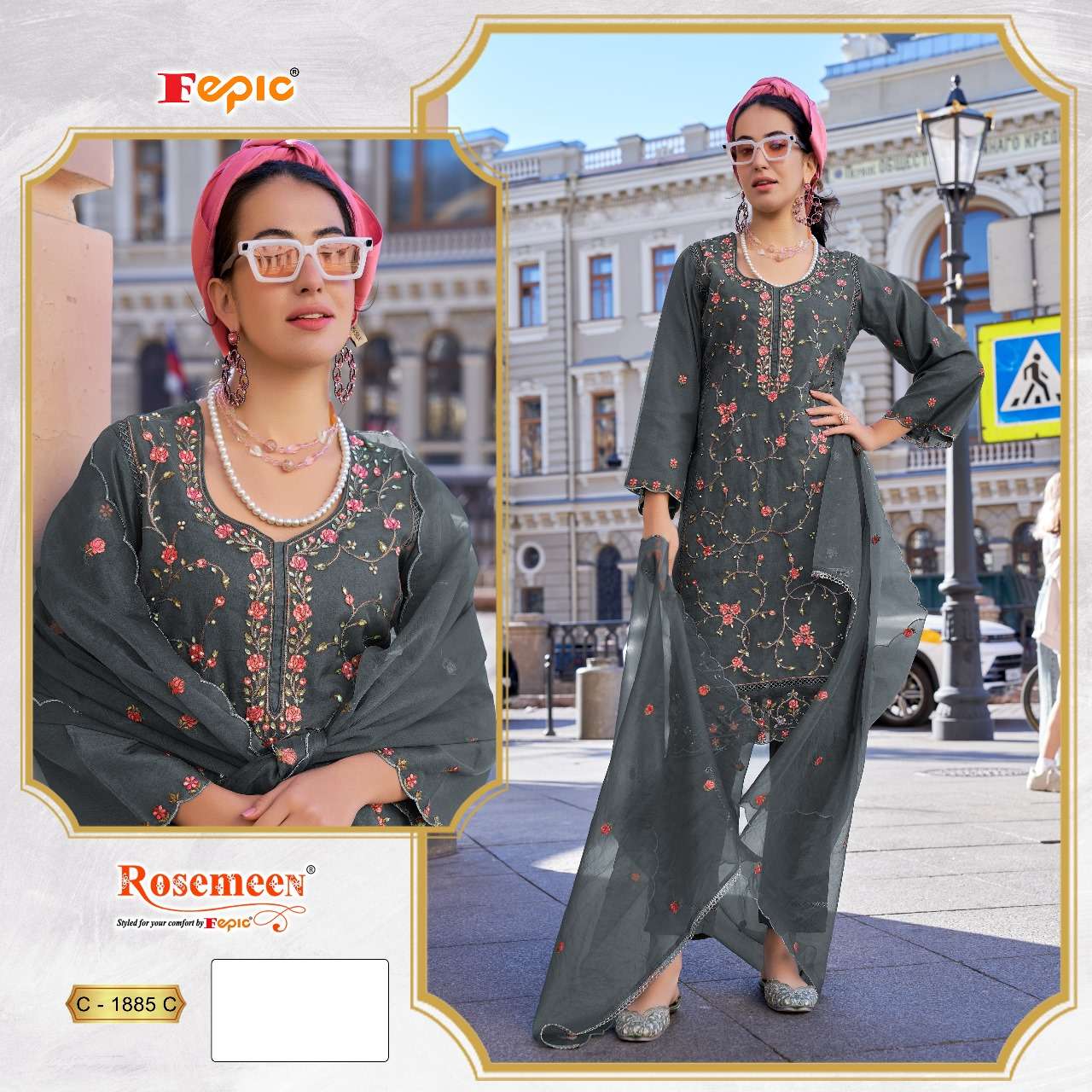 Buy Online ROSEMEEN D NO 1885 new By FEPIC ORGANZA suit collection manufacturer surat 4 Pcs of Full Catalogue at Wholesale Price. Looking for ROSEMEEN D NO 1885 new By FEPIC ORGANZA suit collection manufacturer surat Full Catalouge at Best Price? Buy Now ROSEMEEN D NO 1885 new By FEPIC ORGANZA suit collection manufacturer surat at Wholesale Rate of Rs 5036 with Total 4 Pcs from authroized dealer and supplier of FEPIC Brand. Cost of Each piece is just only Rs 1259 which is very low and affordable price to resale the product in your retail store ,This is Surat based Wholesale Supplier & Dealer of FEPIC Brand. Click on Brand name to Know more about FEPIC Brand's products.Call or Whatsapp on 9898838984 for booking or enquiry
