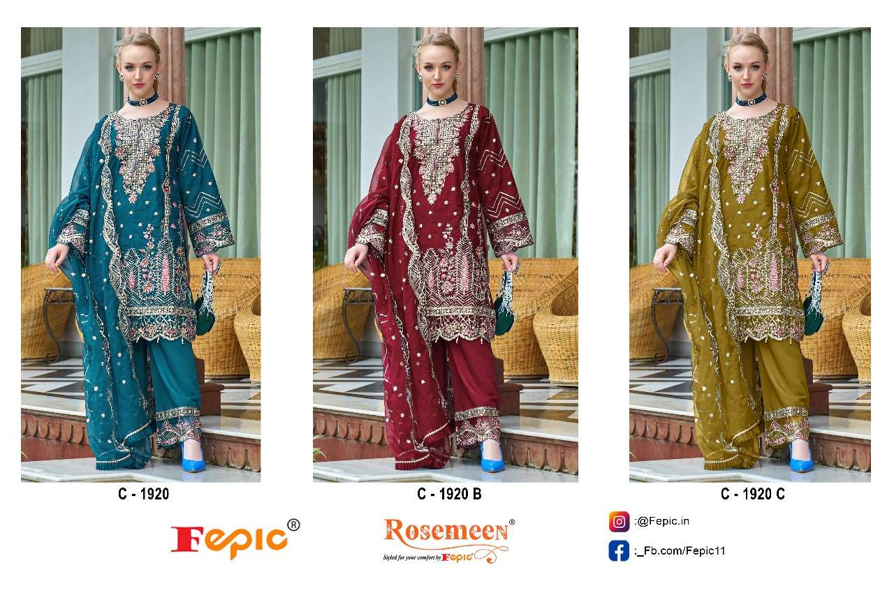 ROSEMEEN D NO 1920 By FEPIC ORGANZA suit collection manufacturer surat