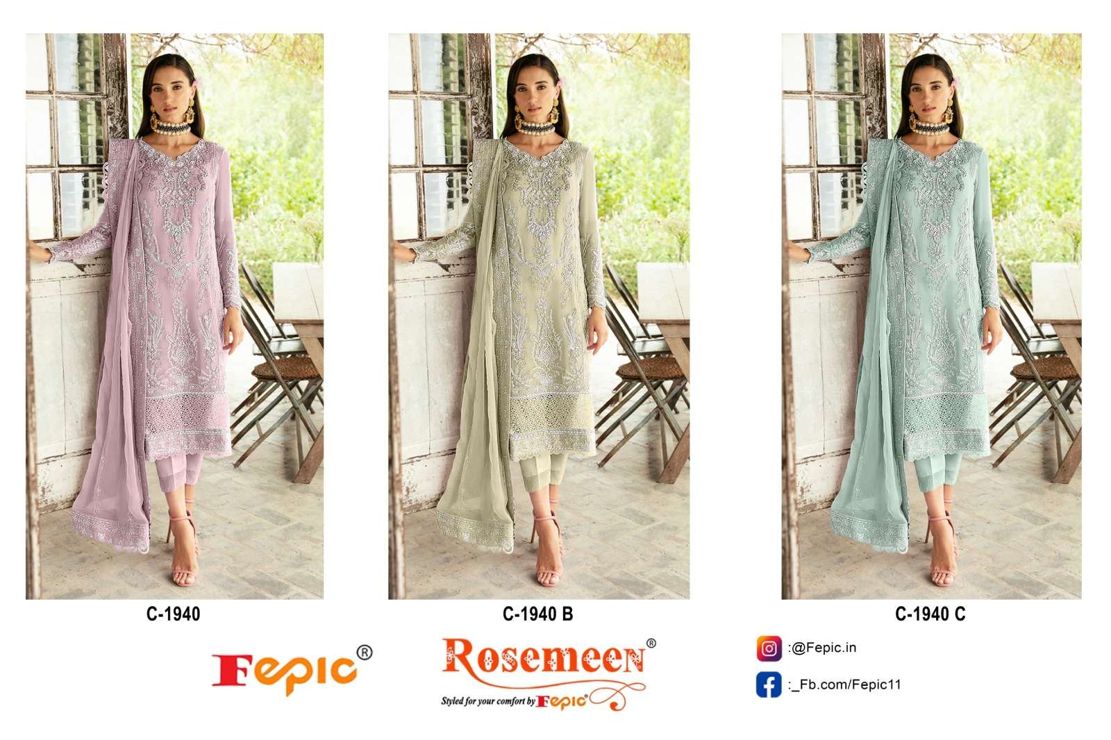 Buy Online ROSEMEEN D NO 1940 By FEPIC GEORGETTE Suit collection manufacturer surat 3 Pcs of Full Catalogue at Wholesale Price. Looking for ROSEMEEN D NO 1940 By FEPIC GEORGETTE Suit collection manufacturer surat Full Catalouge at Best Price? Buy Now ROSEMEEN D NO 1940 By FEPIC GEORGETTE Suit collection manufacturer surat at Wholesale Rate of Rs 3555 with Total 3 Pcs from authroized dealer and supplier of FEPIC Brand. Cost of Each piece is just only Rs 1185 which is very low and affordable price to resale the product in your retail store ,This is Surat based Wholesale Supplier & Dealer of FEPIC Brand. Click on Brand name to Know more about FEPIC Brand's products.Call or Whatsapp on 9898838984 for booking or enquiry