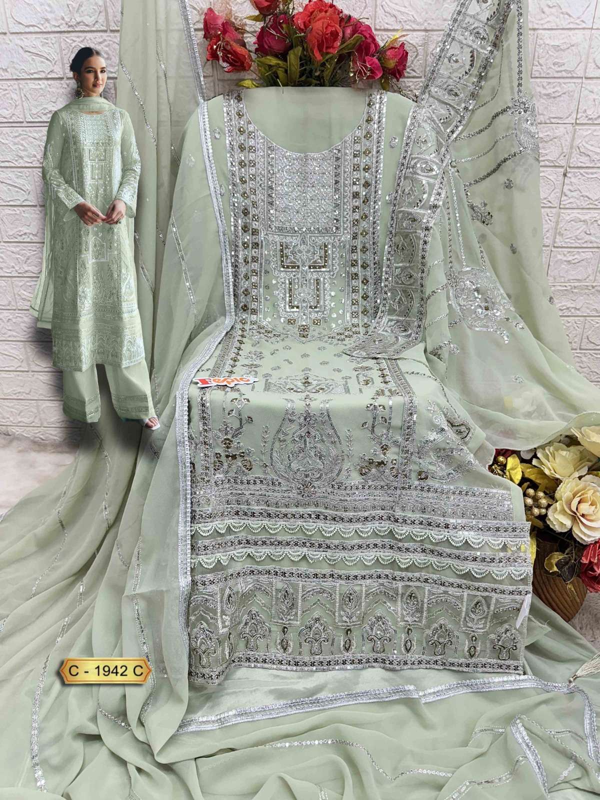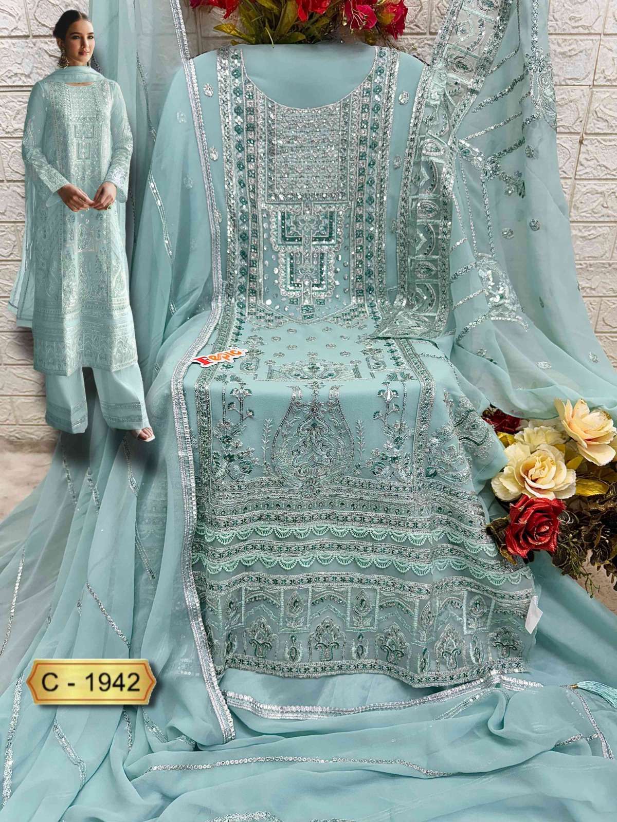 Buy Online ROSEMEEN D NO 1942 by FEPIC GEORGETTE suit collection manufacturer surat 3 Pcs of Full Catalogue at Wholesale Price. Looking for ROSEMEEN D NO 1942 by FEPIC GEORGETTE suit collection manufacturer surat Full Catalouge at Best Price? Buy Now ROSEMEEN D NO 1942 by FEPIC GEORGETTE suit collection manufacturer surat at Wholesale Rate of Rs 3933 with Total 3 Pcs from authroized dealer and supplier of FEPIC Brand. Cost of Each piece is just only Rs 1311 which is very low and affordable price to resale the product in your retail store ,This is Surat based Wholesale Supplier & Dealer of FEPIC Brand. Click on Brand name to Know more about FEPIC Brand's products.Call or Whatsapp on 9898838984 for booking or enquiry
